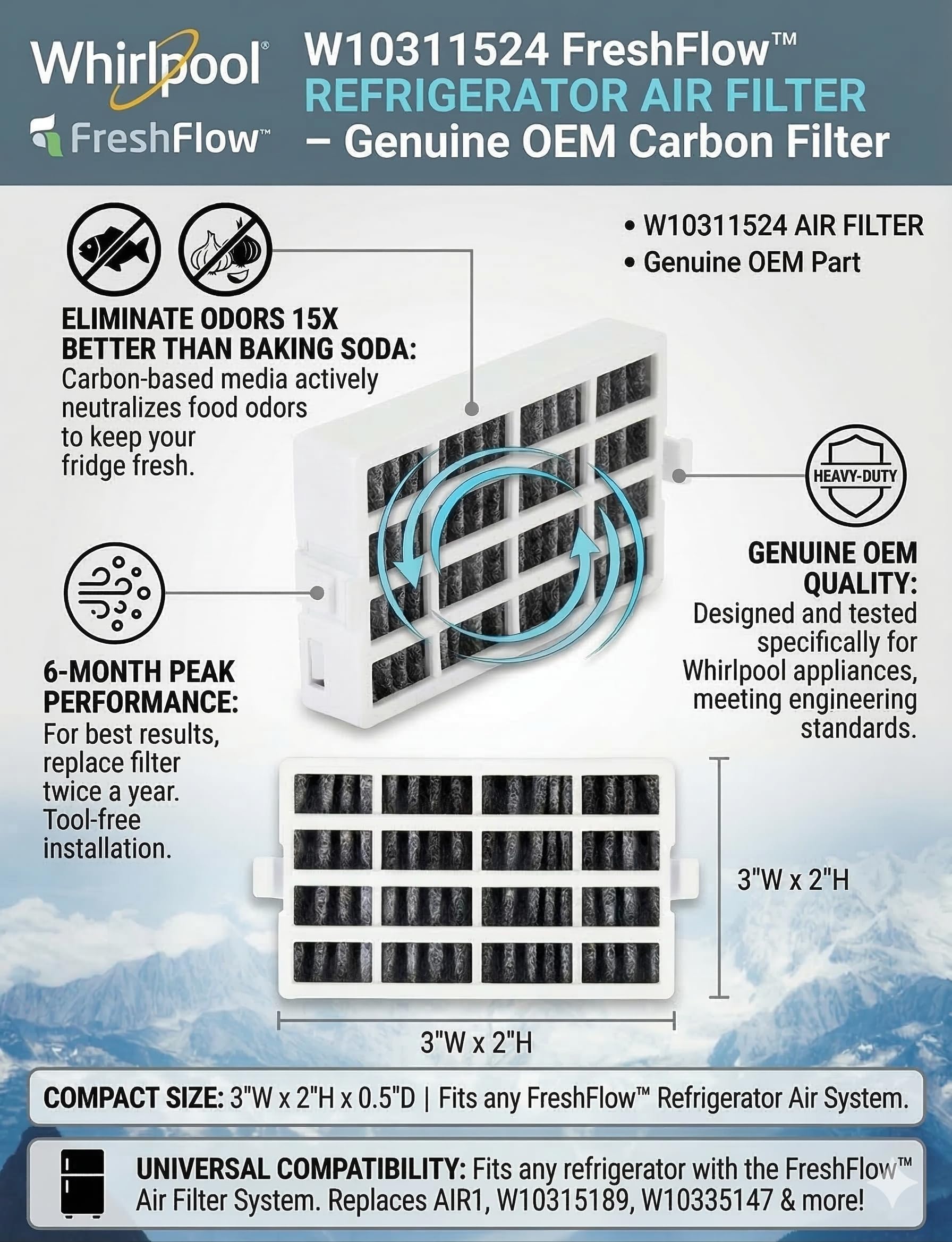 ACCESSORY W10311524 replaces 1876318, 2319308, AH2580853, AIR 1, AIR1, EA2580853, PS2580853, W10315189, W10335147
