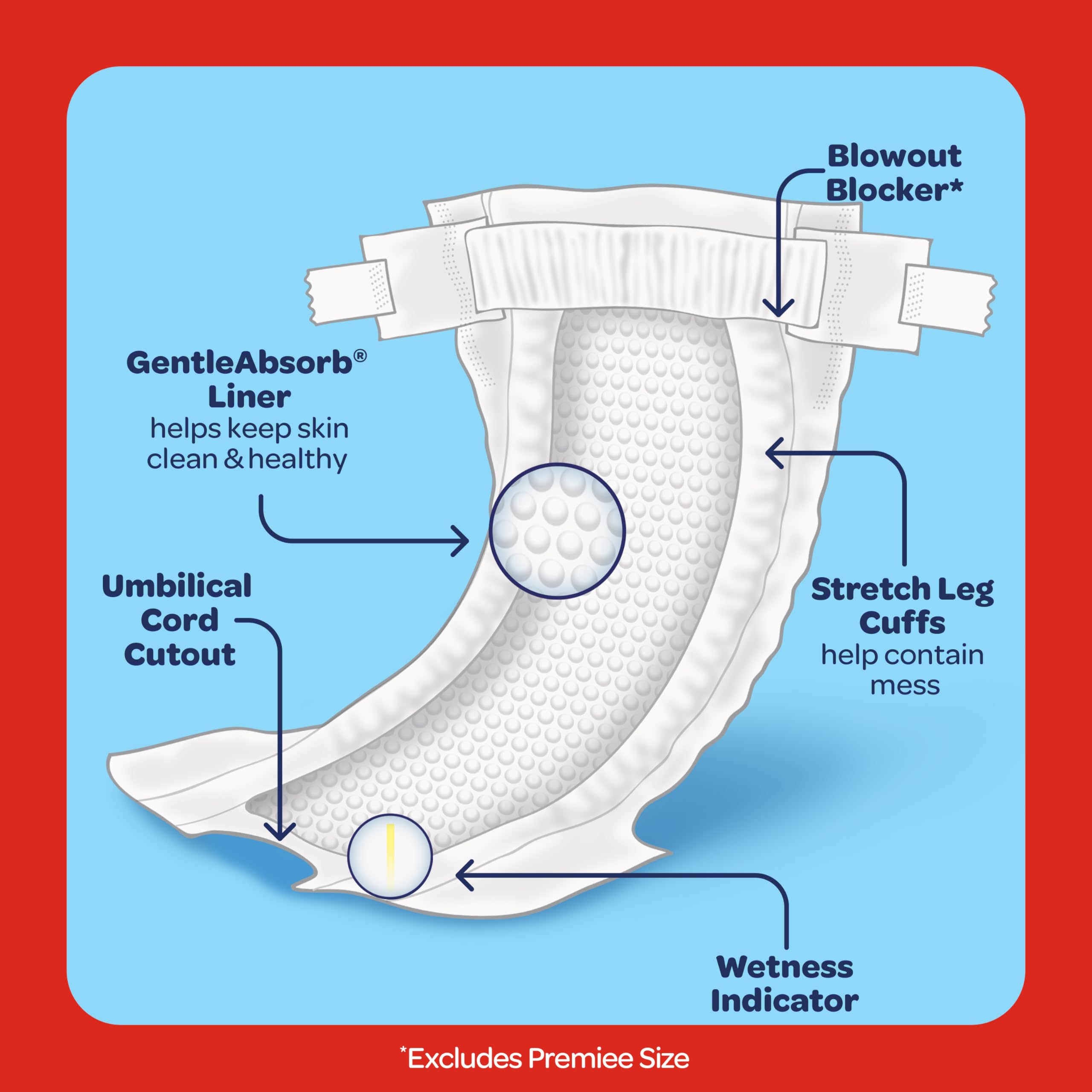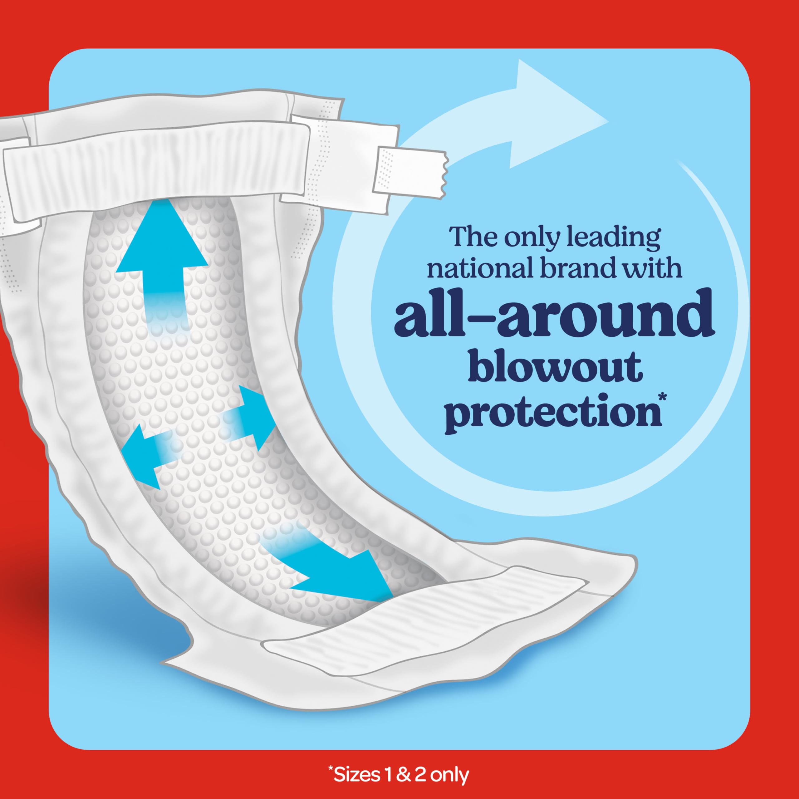 The only leading national brand with front & back blowout blocker* (*Size 1 and 2 only)