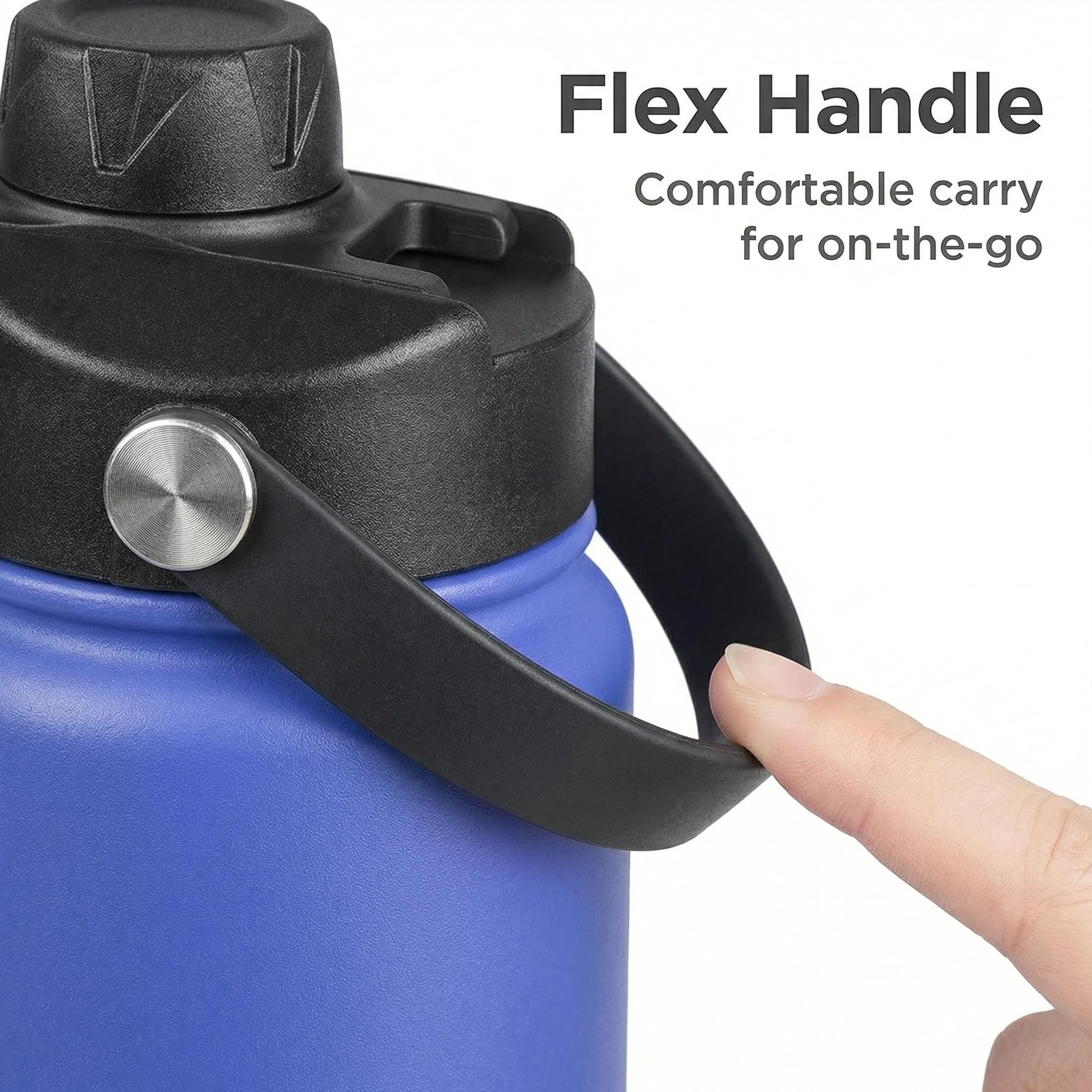 EFFORTLESS HYDRATION ON THE GO This spout lid is engineered for maximum flow, enabling easy, one-handed drinking anytime. Its superior gasket design (better than standard straw lids) ensures a 100% leak-proof seal—feel confident tossing it in your bag. The easy-to-use chug lid twists open to drink; no need to remove the entire lid. Plus, the flexible soft handle makes it incredibly easy to carry at the gym, on a hike, or during your commute.