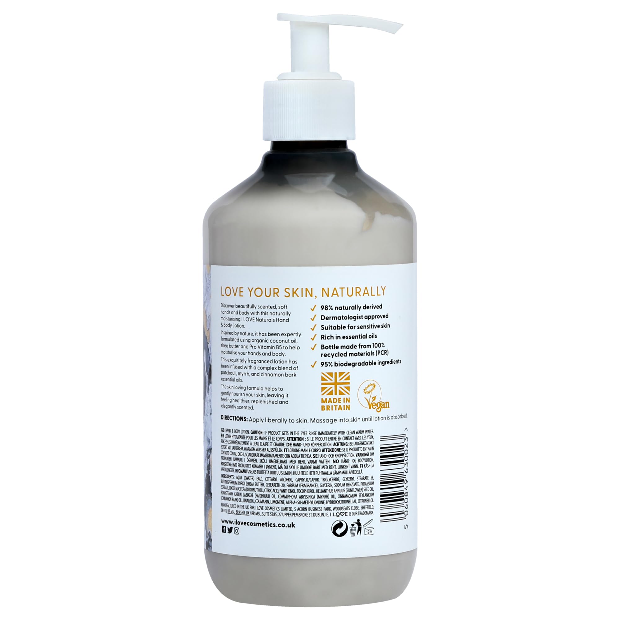 INSPIRED BY NATURE. This hand and body lotion formula is infused with organic coconut oil, shea butter, and provitamin B5, a trio that intensely hydrates and soothes dry, cracked skin.