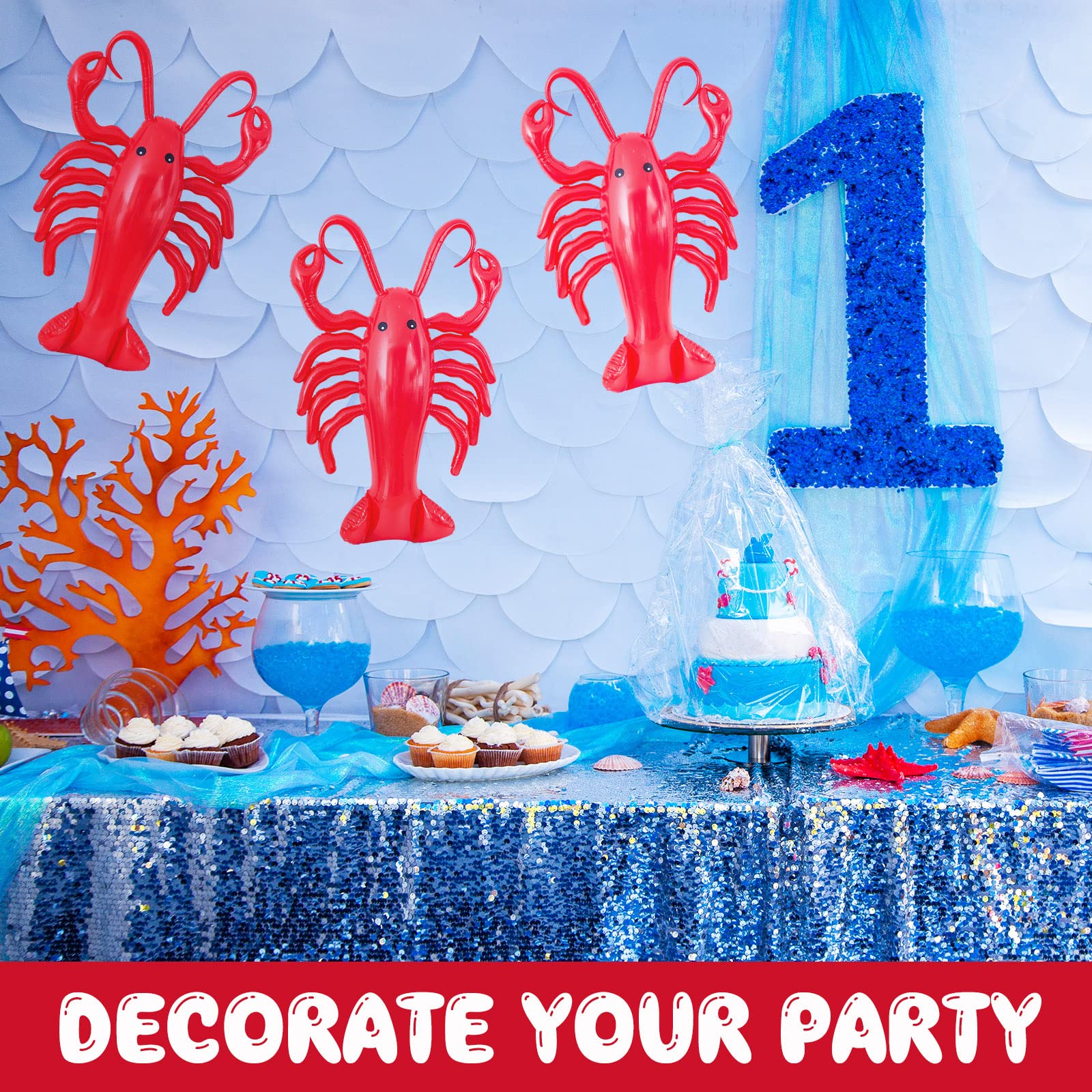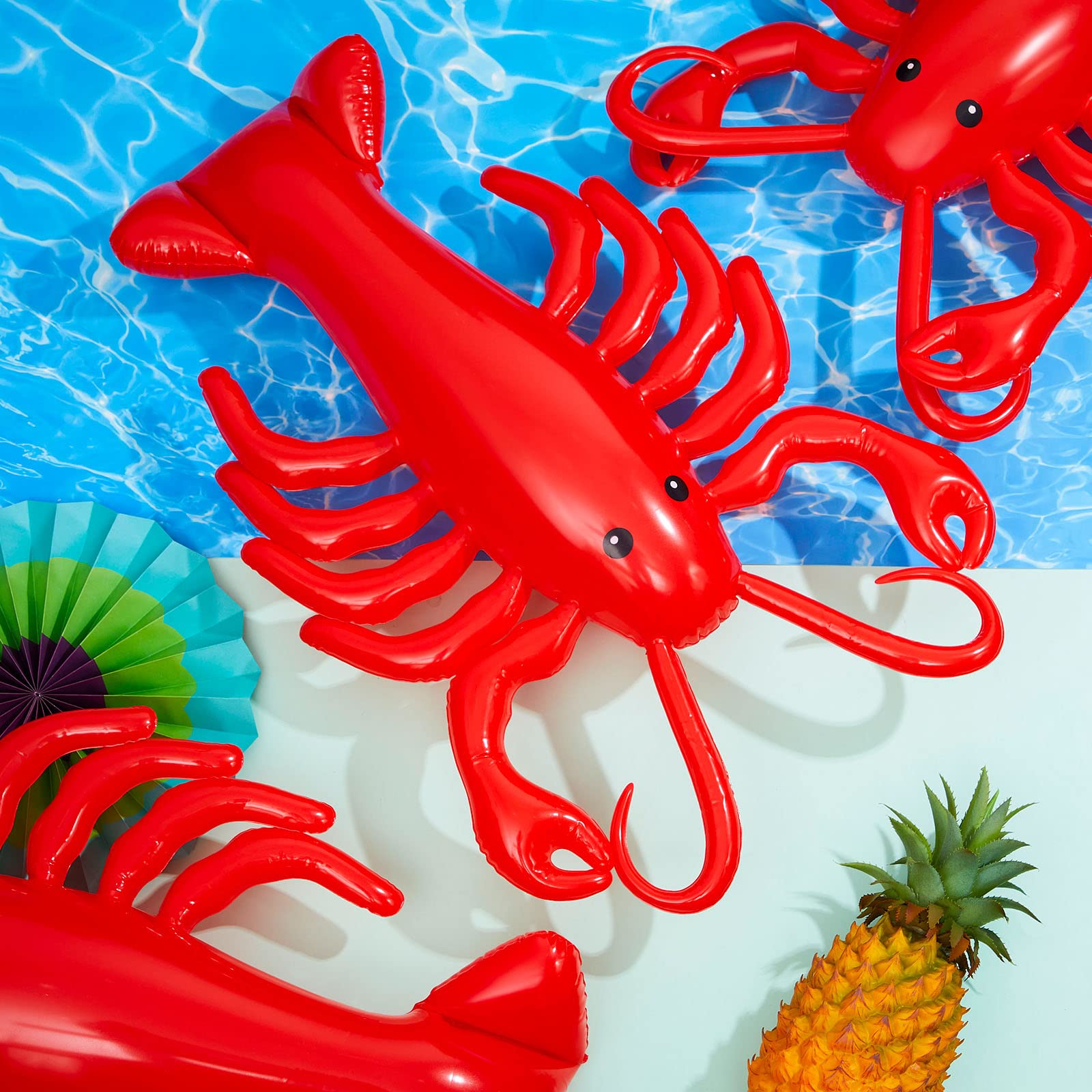 Abundant Quantity to Meet Your Needs: you will receive 3 pcs 20-inch inflatable lobster decorations, primarily in red; The simple design, along with the ample quantity, makes it suitable for group arrangements, multiple placements, or rotation, easily filling your pool parties, patio gatherings, and summer outdoor activities
