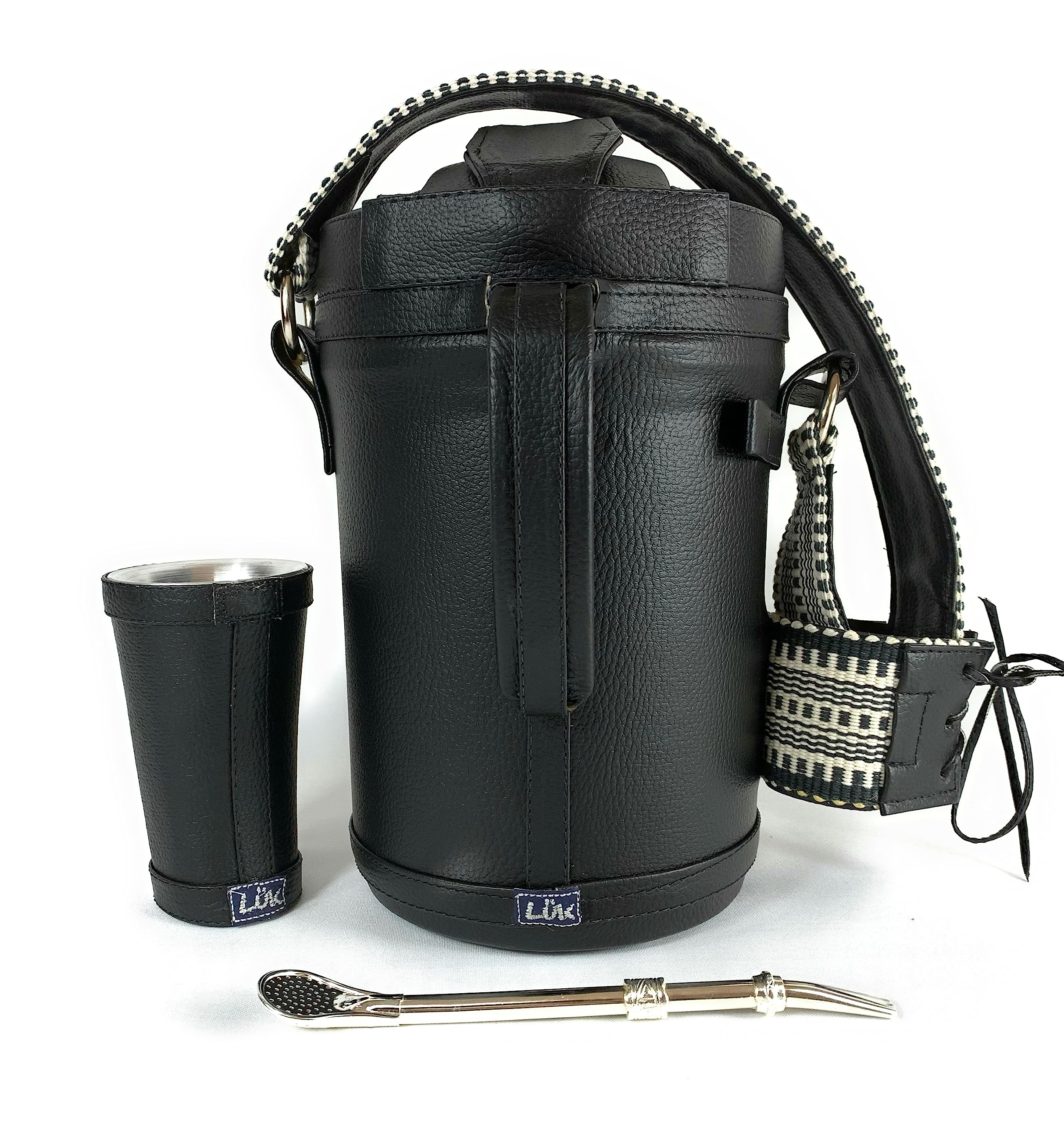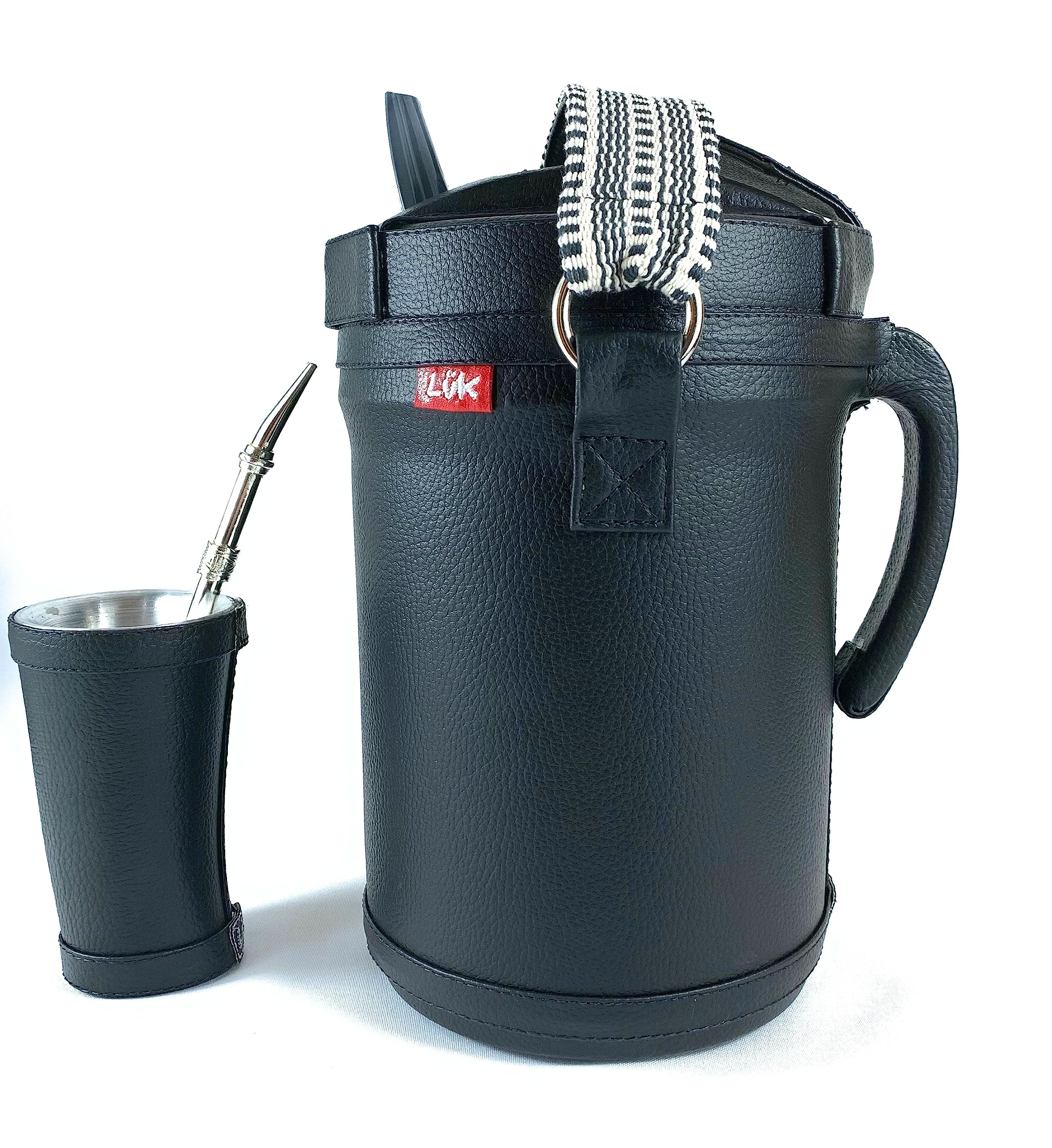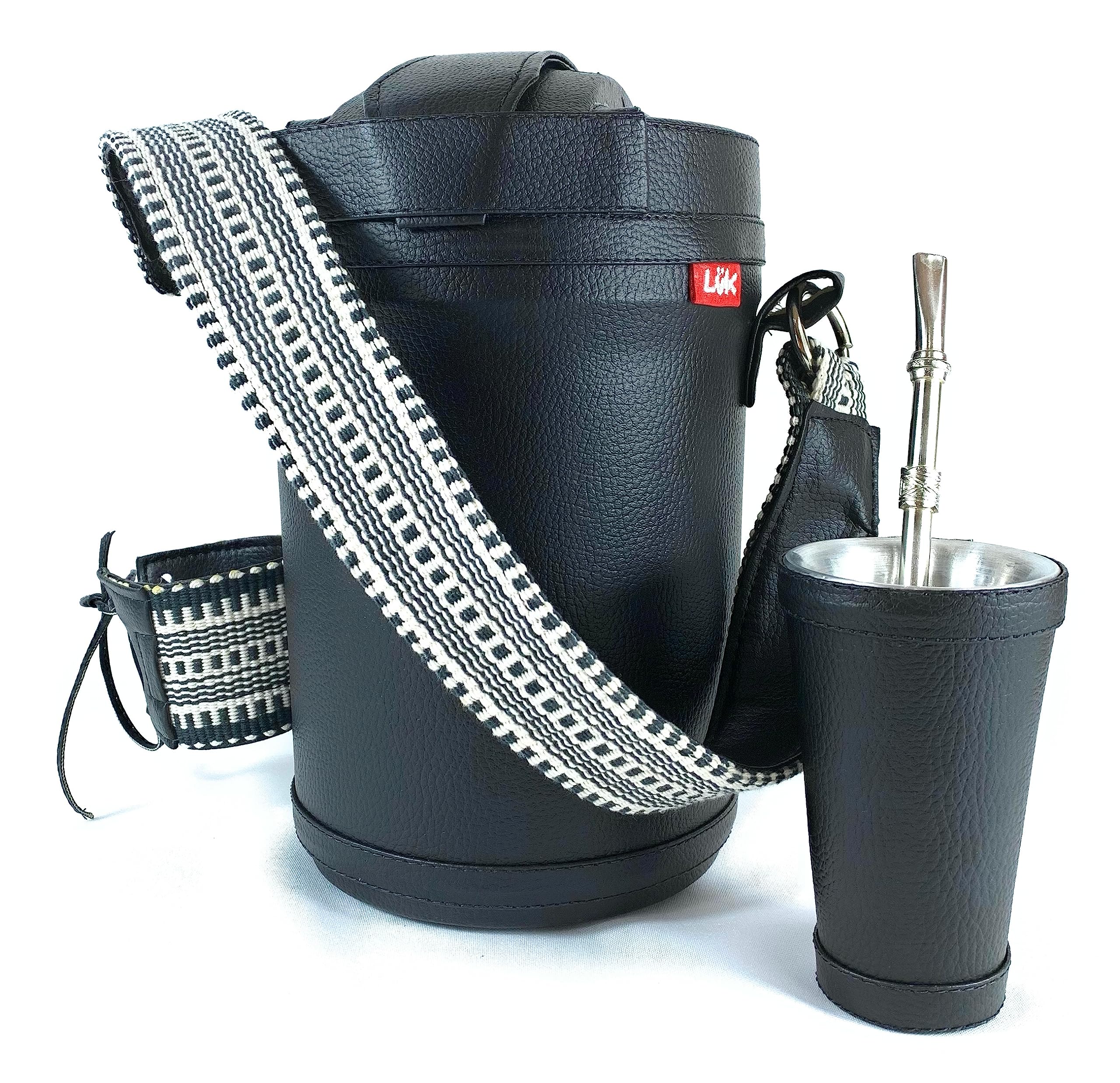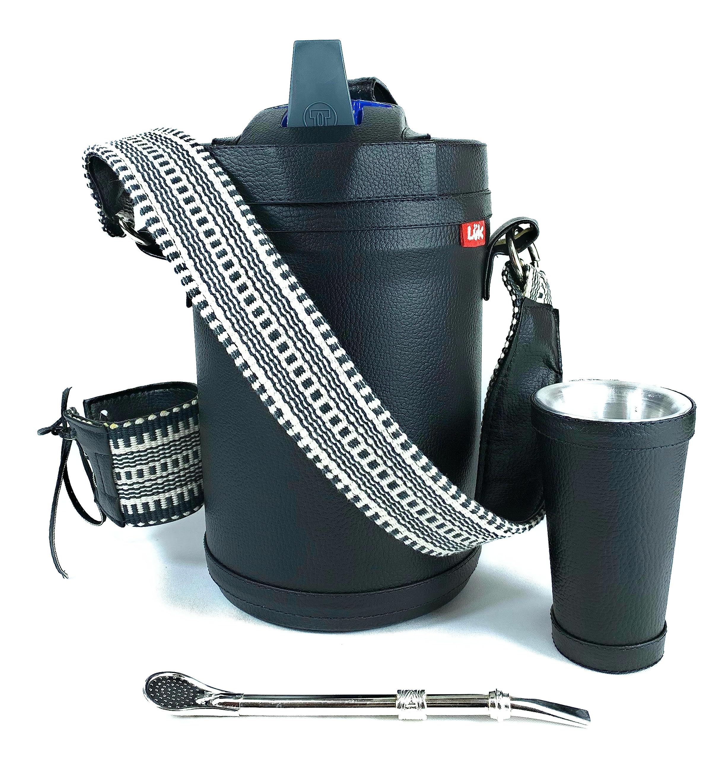 El set de Luk Termos presenta toda la practicidad y conveniencia para hacer que los momentos al aire libre sean aún más cómodos. Especialmente diseñados y elaborados de forma artesanal para disfrutar de la tradicional bebida fría: el Tereré. El termo tiene dos asas, una móvil para facilitar el transporte y otra fija para ayudar a servir. Contiene un pico móvil que dirige el flujo al servir y tiene una boquilla grande para facilitar el uso. - El tereré es una bebida hecha con hojas de yerba mate (Ilex paraguariensis) y agua con mucho hielo, al cual se le suelen añadir hierbas medicinales. Esta infusión es muy tradicional en el Paraguay y en otros países sudamericanos. El set contiene: - 1 termo para Agua Fría es un producto con aislamiento térmico de PU, que garantiza alta resistencia, durabilidad y conservación térmica, con capacidad de 2.5 Litros y está recubierto en cuero ecológico Premium, elaborado de forma artesanal con cuero ecológico en color negro con detalles de faja paraguaya en la manija y en el portavaso. -1 Guampa / vaso mate Capaz de sostener 140 ml forrado en cuero ecológico Premium. No apto para lavavajillas ni microondas. -1 Bombilla de alpaca: esta bombilla yerba mate está hecha de acero de alpaca de la más alta calidad. Está hecho de aleación de níquel y plata resistente a la corrosión, y es ligero, suave y hermosamente elaborado con un cabezal de filtro con un acabado elegante y de alta calidad