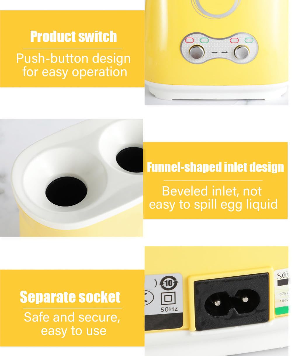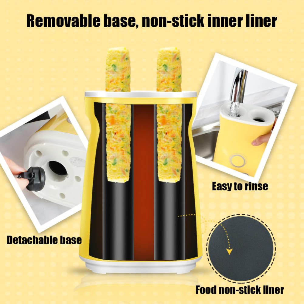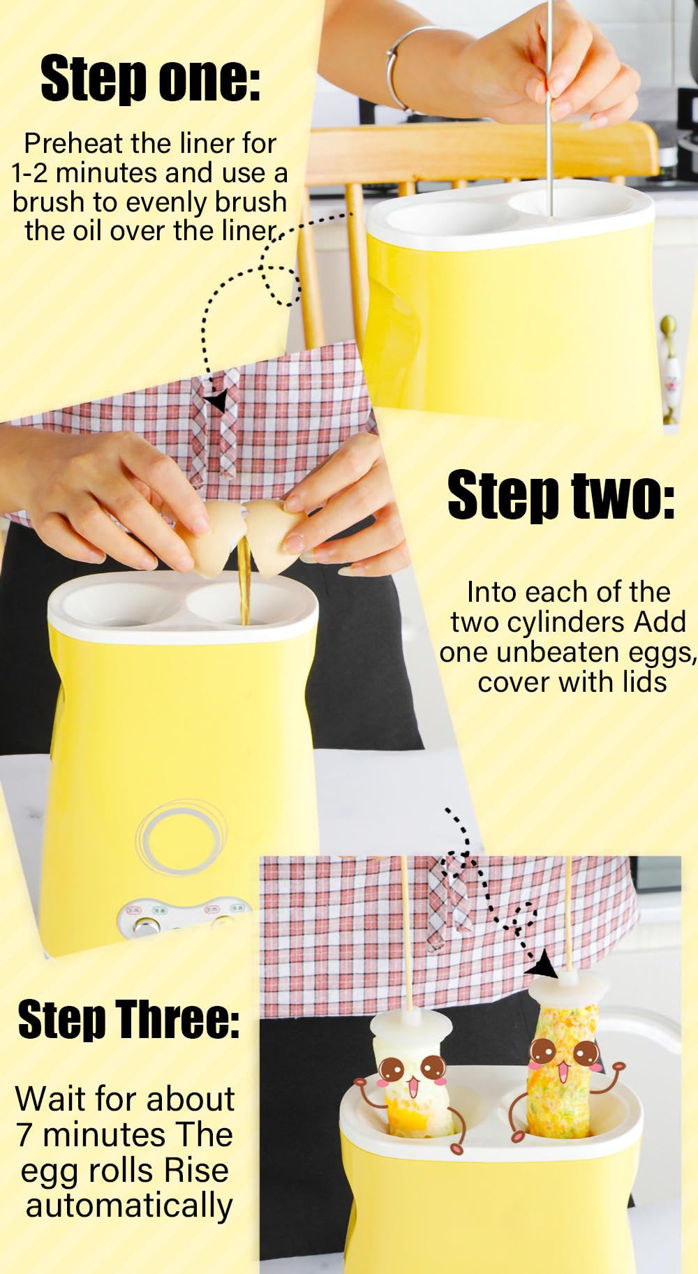 ✨【DELICIOUS EGG HOT DOG】After powering on, just add the right amount of cooking oil (you can add salt according to taste), stir it up and down with the oil brushing lever, then beat the eggs into the egg dispenser and insert a hot dog, wait for a few minutes. In about 7 minutes or so, the delicious egg rolls will pop up for you to enjoy pure egg omelettes.