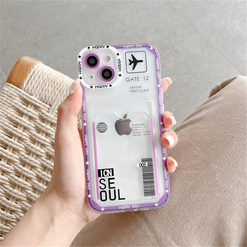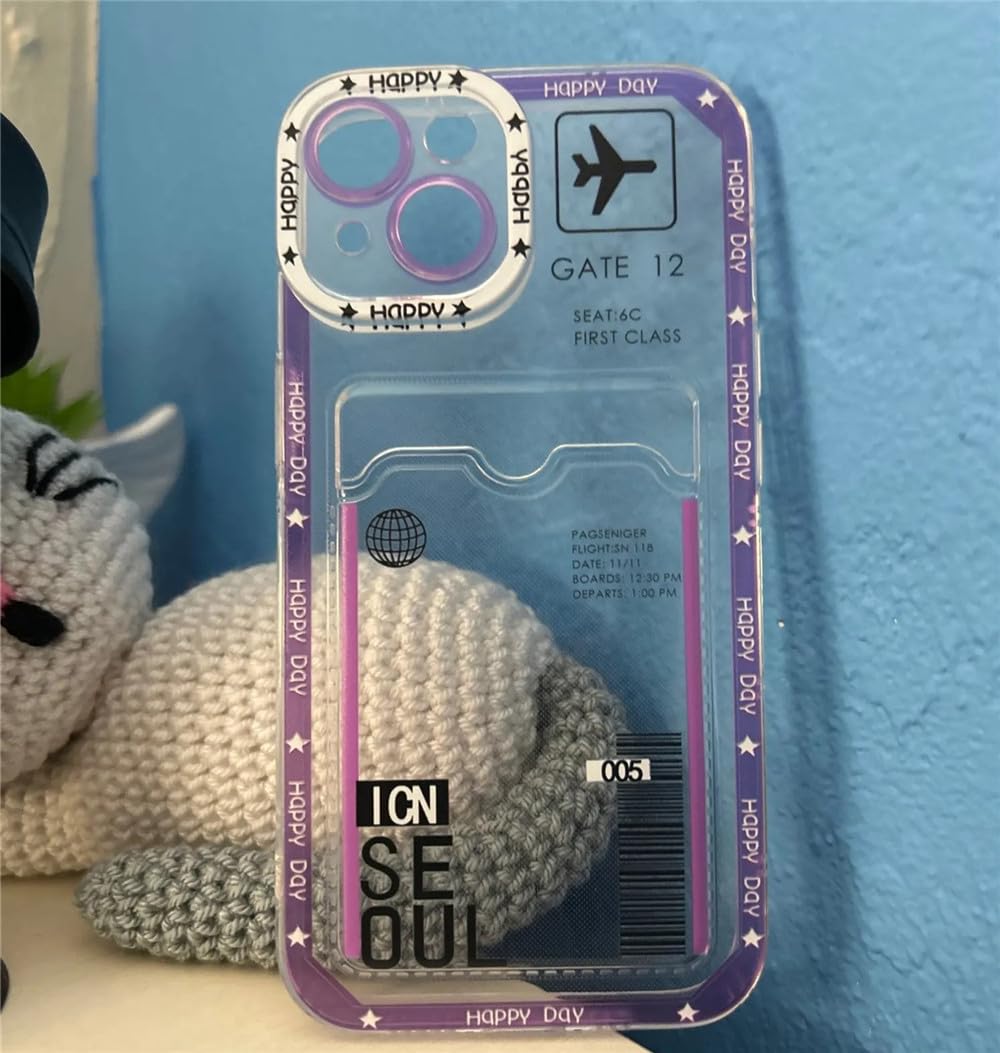 【Cute Pattern】Cute cartoon Seoul Flight boarding pass design with photo, card holder, can put your favourite pop stars photo, not easy to drop, keep shining and make your phone unique.