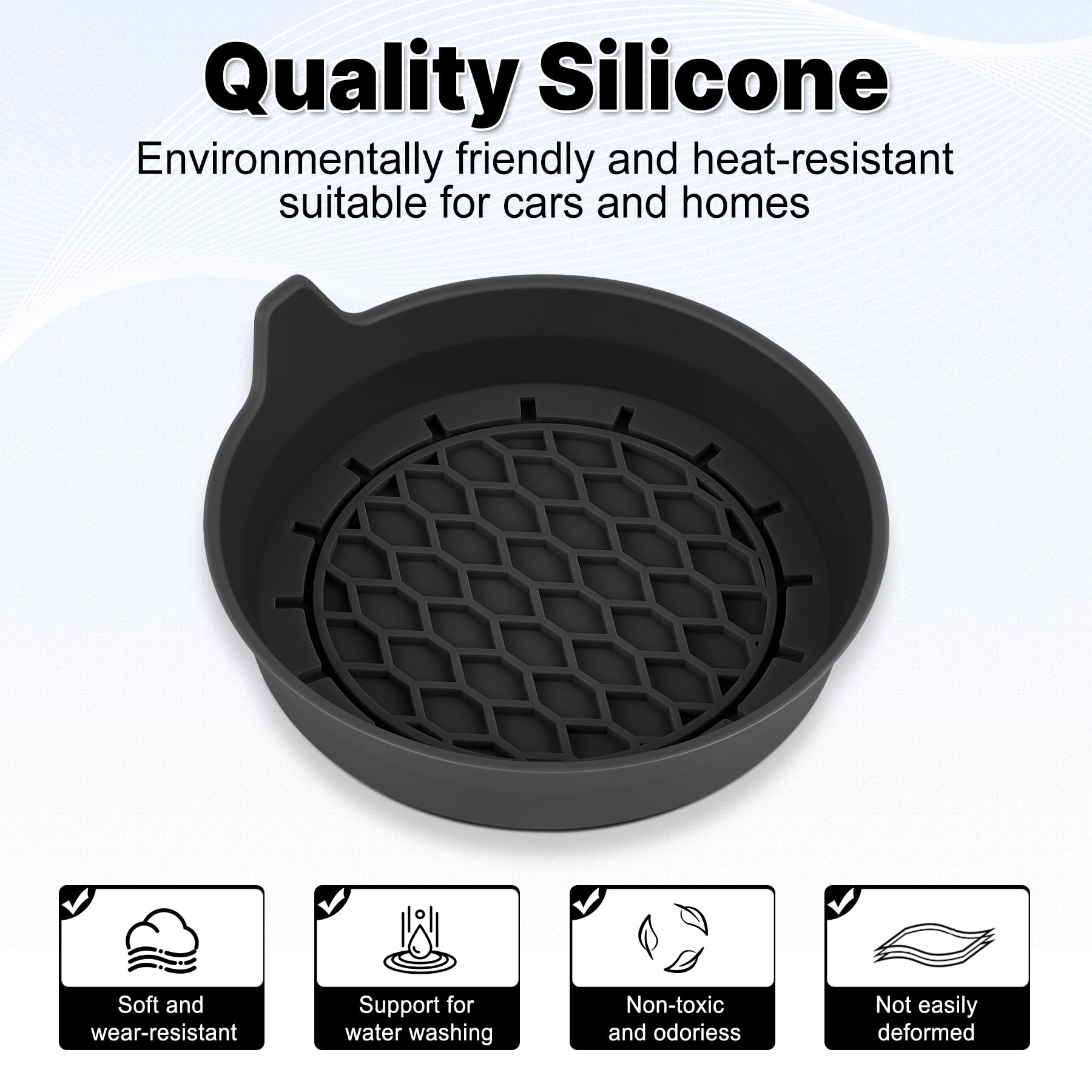 The coaster is made of environmentally friendly silicone, safe, non-toxic and odorless. Soft with toughness, easily embedded in the cup holder. Very durable, wear-resistant, long service life. High temperature resistance, can withstand 100 ℃ high temperature water cups.