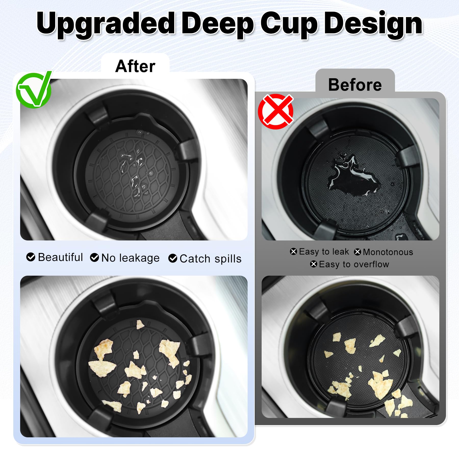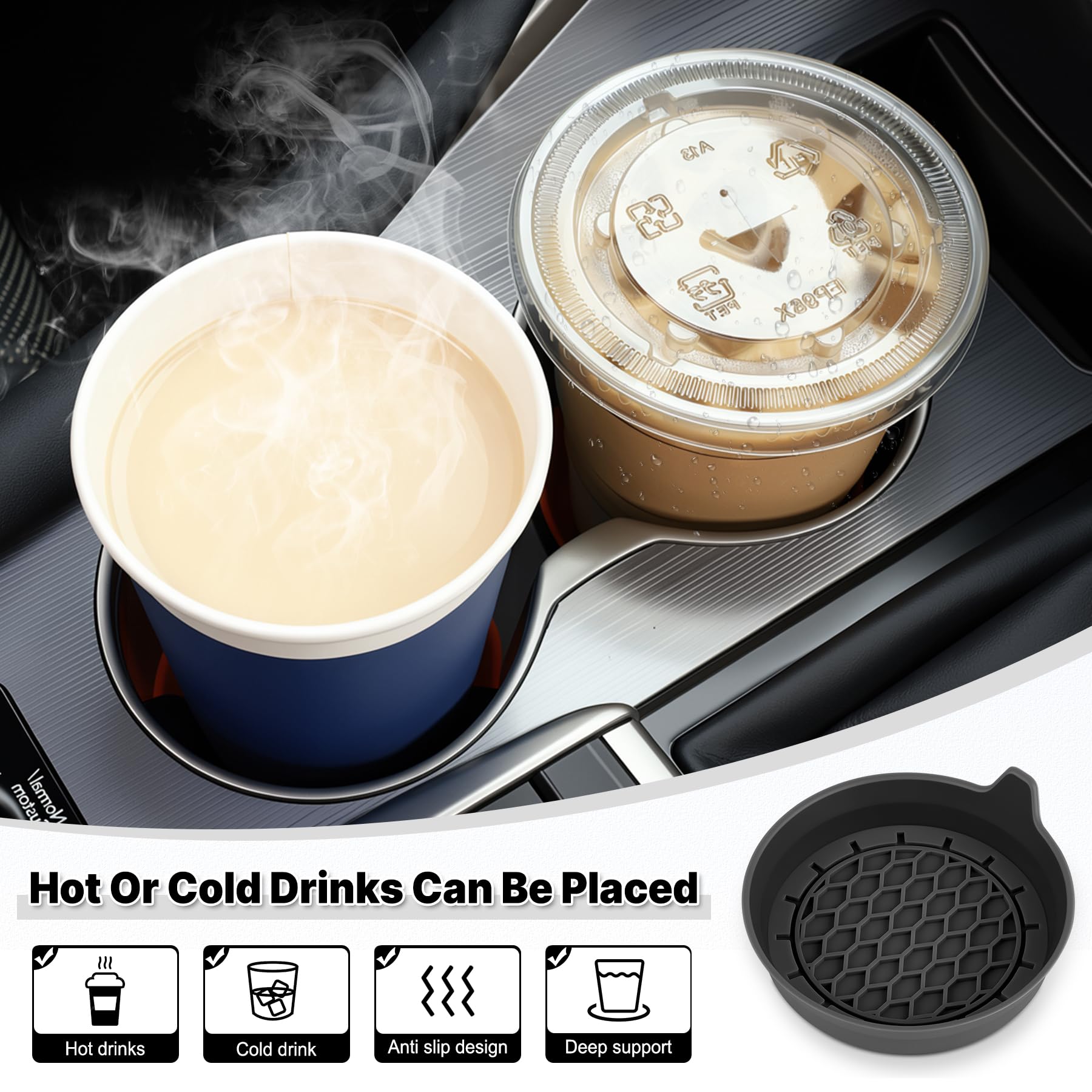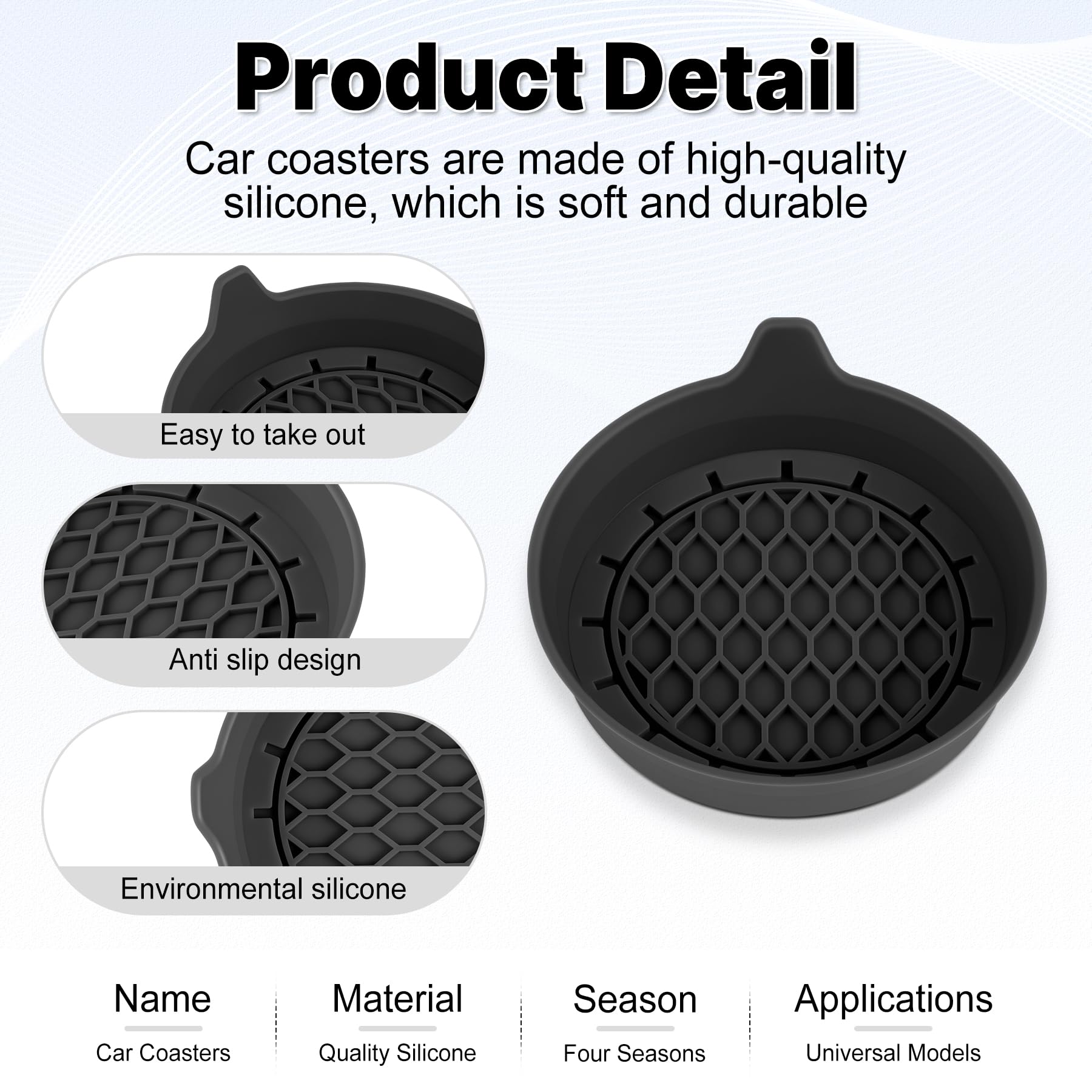 Our car cup holder coaster has a carry handle design and a stand-up ring edge on its edge to effectively prevent food crumbs, drinks and water from leaking out and preventing the car cup holder from getting dirty.Meanwhile,Thickened design effectively prevents the cup holder from being scratched by the cup when driving on bumpy roads and eliminates the annoying thumping sound, making your journey more enjoyable.