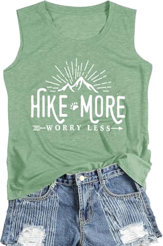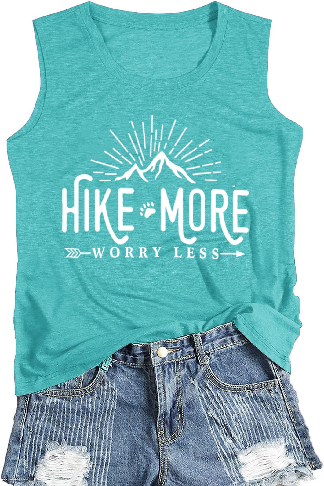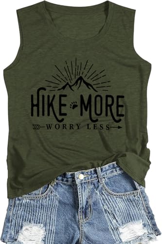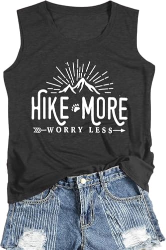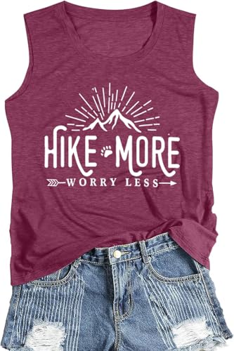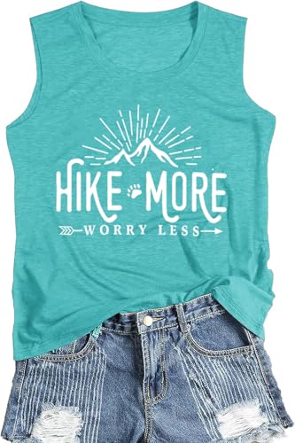 Comfy & Soft & Skin-friendly Workout Tank. Women hike more worry less tank is made of cotton blend. This summer graphic tank tops can be wear for daily workout casual tops, vacation beach tees tanks, camping and hiking tshirt, mountain tanks, adventure printed sleeveless shirts. Loose fitting stretchy style suit for any body types and will makes you feel ease all day.