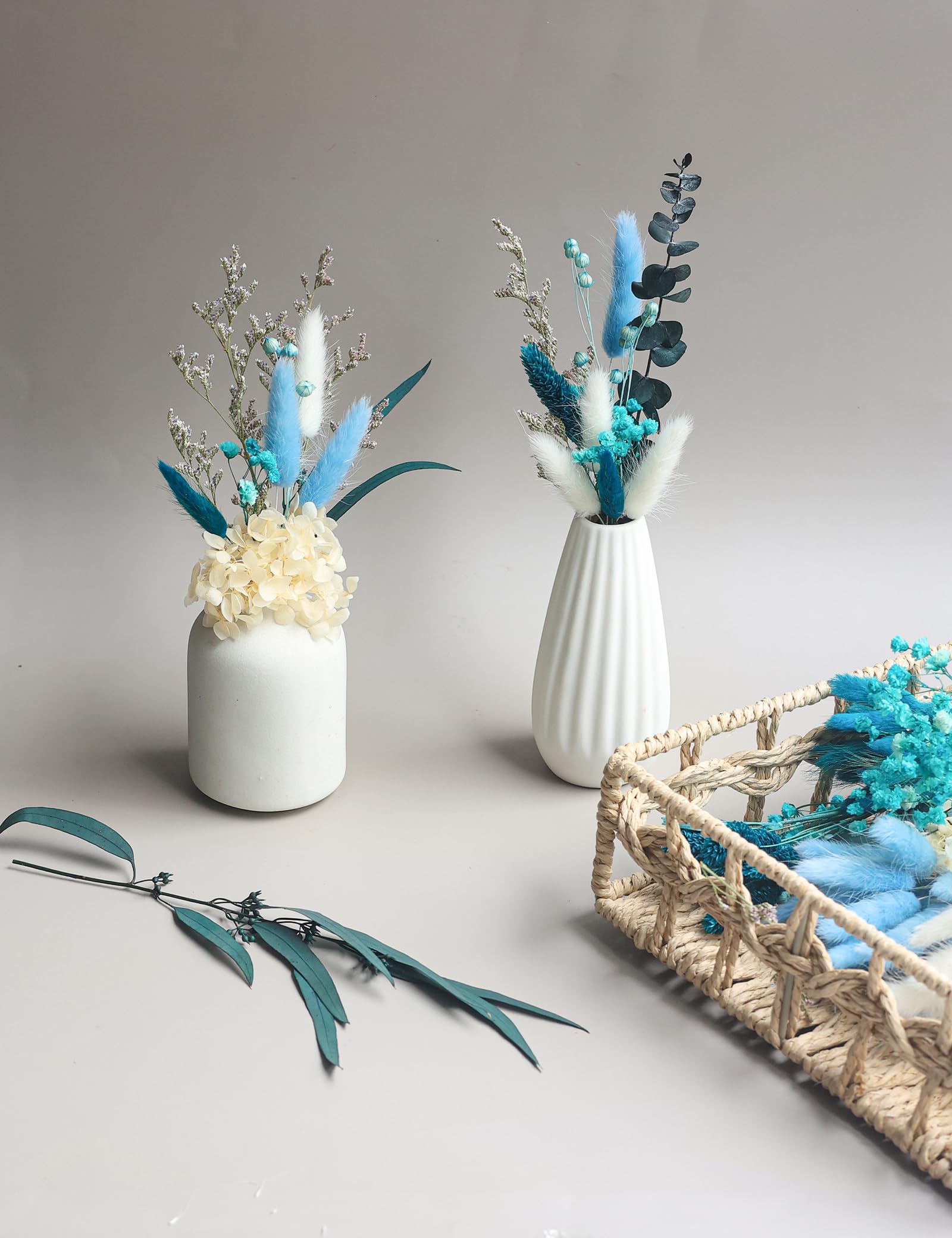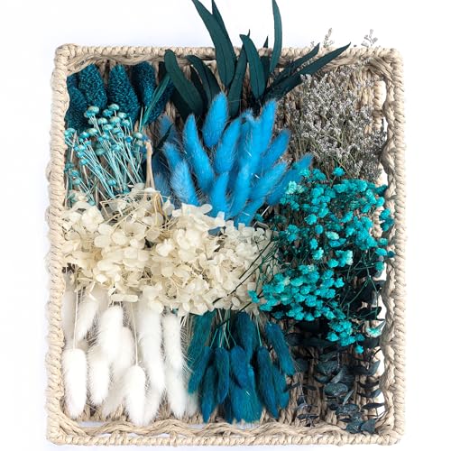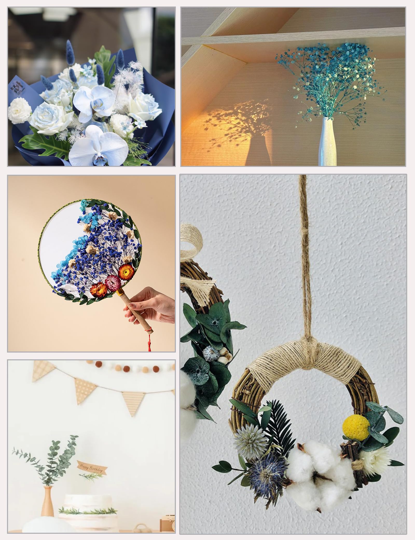 ❤This natural mixed dried flower bouquet contains 10 types of dried floral materials, including peacock blue pampas grass, natural pampas grass, sea lavender, hydrangea, eucalyptus leaves, baby's breath, and eucalyptus leaves.