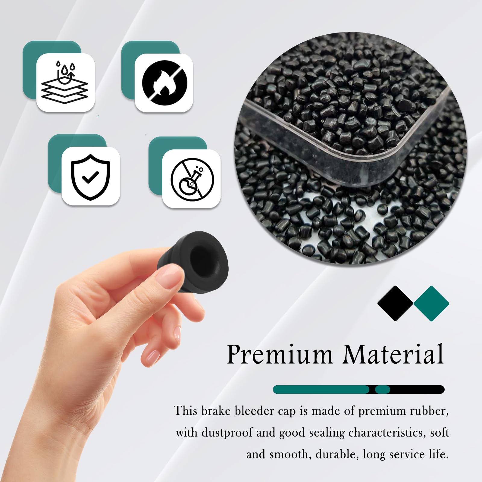 This brake bleeder cap is made of premium rubber, with dustproof and good sealing characteristics, soft and smooth, durable, long service life. You can rest assured that it will function properly even in extreme weather conditions