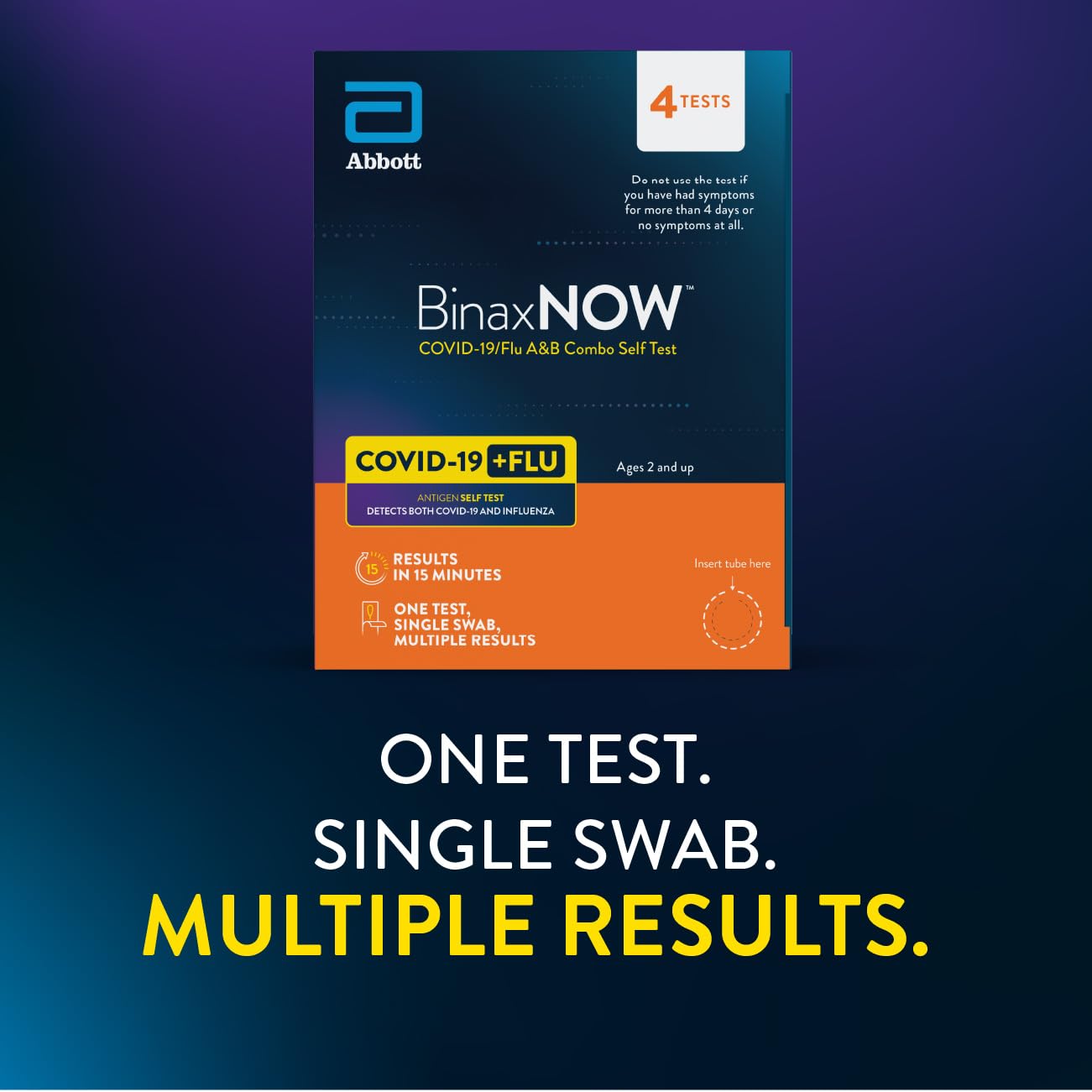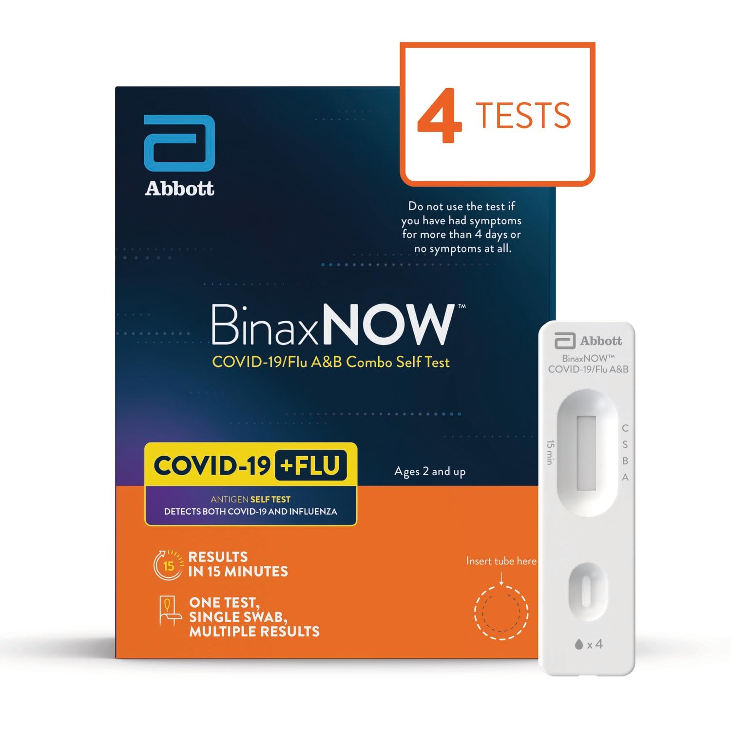 Includes 4 at-home COVID and flu rapid tests designed to detect active infection.