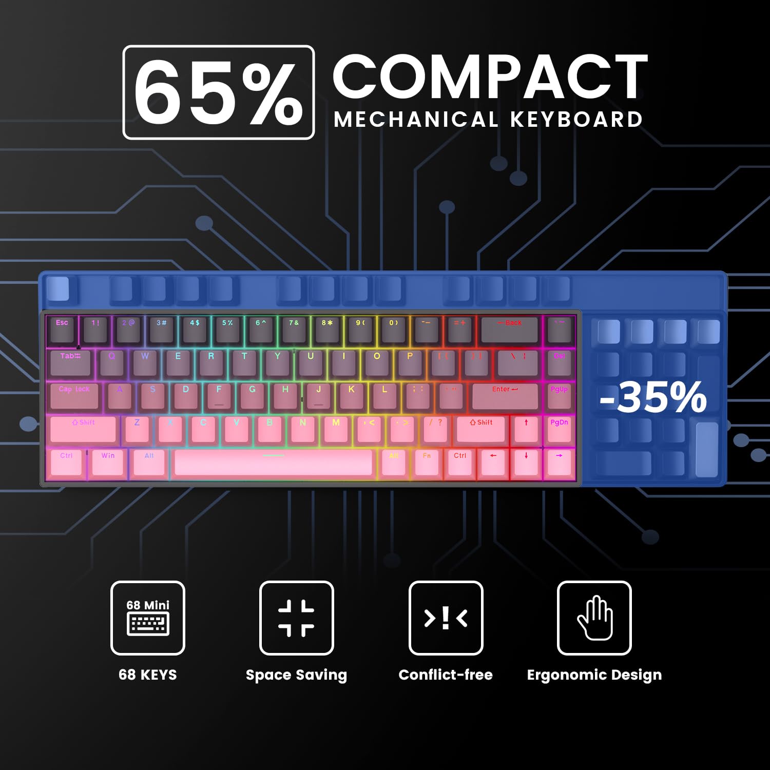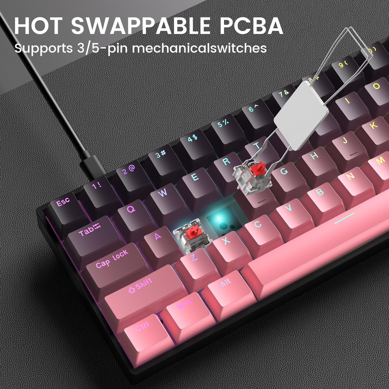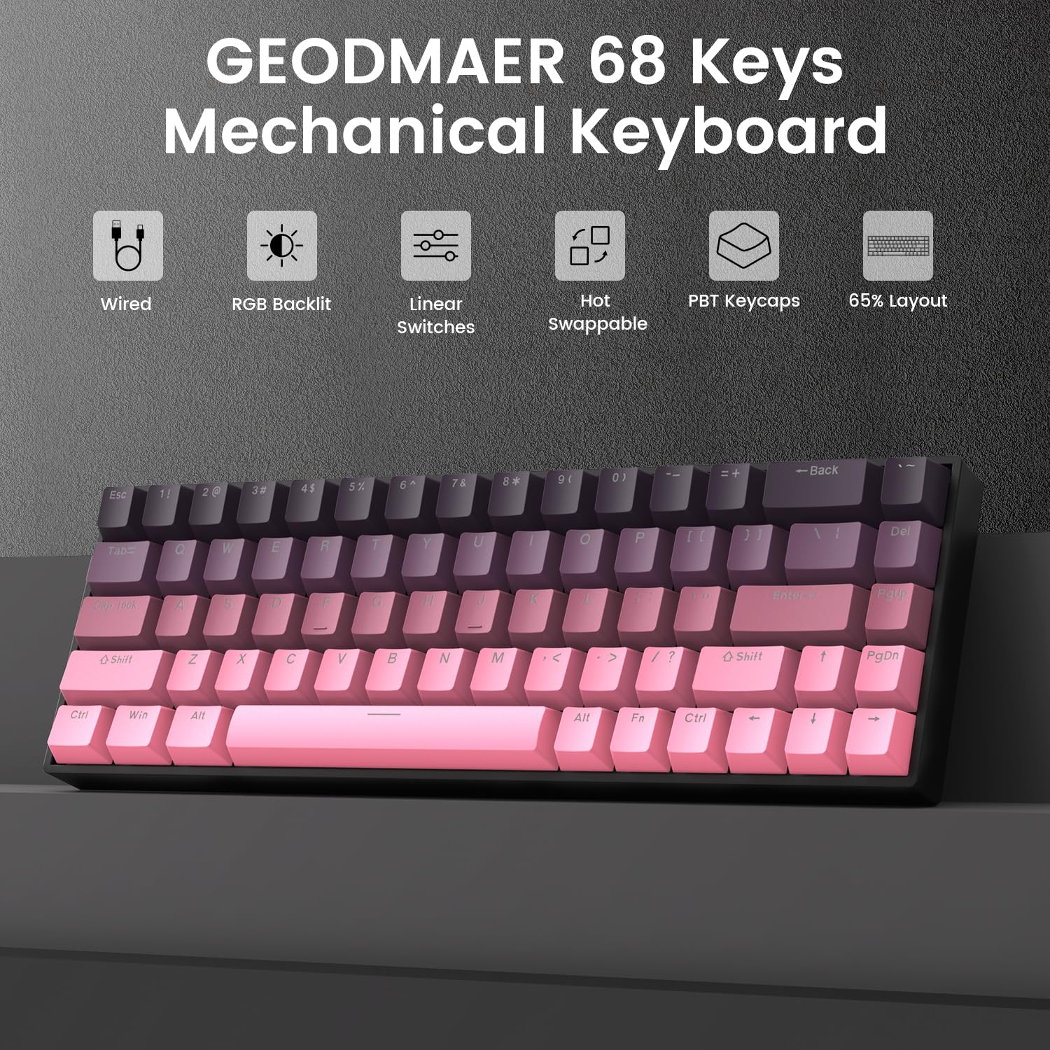 Hot-Swappable Linear Red Switch: GEODMAER mechanical gaming keyboard uses red switches, which provide precise feedback for each keystroke and respond quickly on the computer. keystroke smooth to the touch, N-key rollover, fast key response, delivering outstanding performance in gaming. The hot-swappable design supports 3-pin/5-pin switches, allowing you to customize your own keyboard.