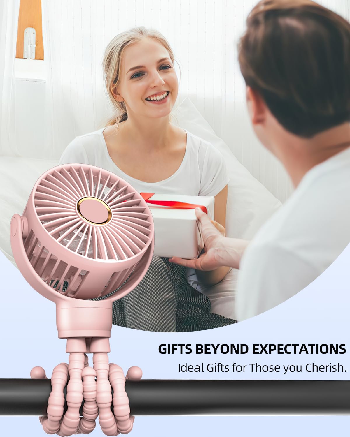 The fan is equipped with a flexible tripod clip, which can be easily attached to the stroller handlebar, car seat, crib, bike seat, treadmill, or any other flat surface. It is convenient to use and provides a stable cooling effect.