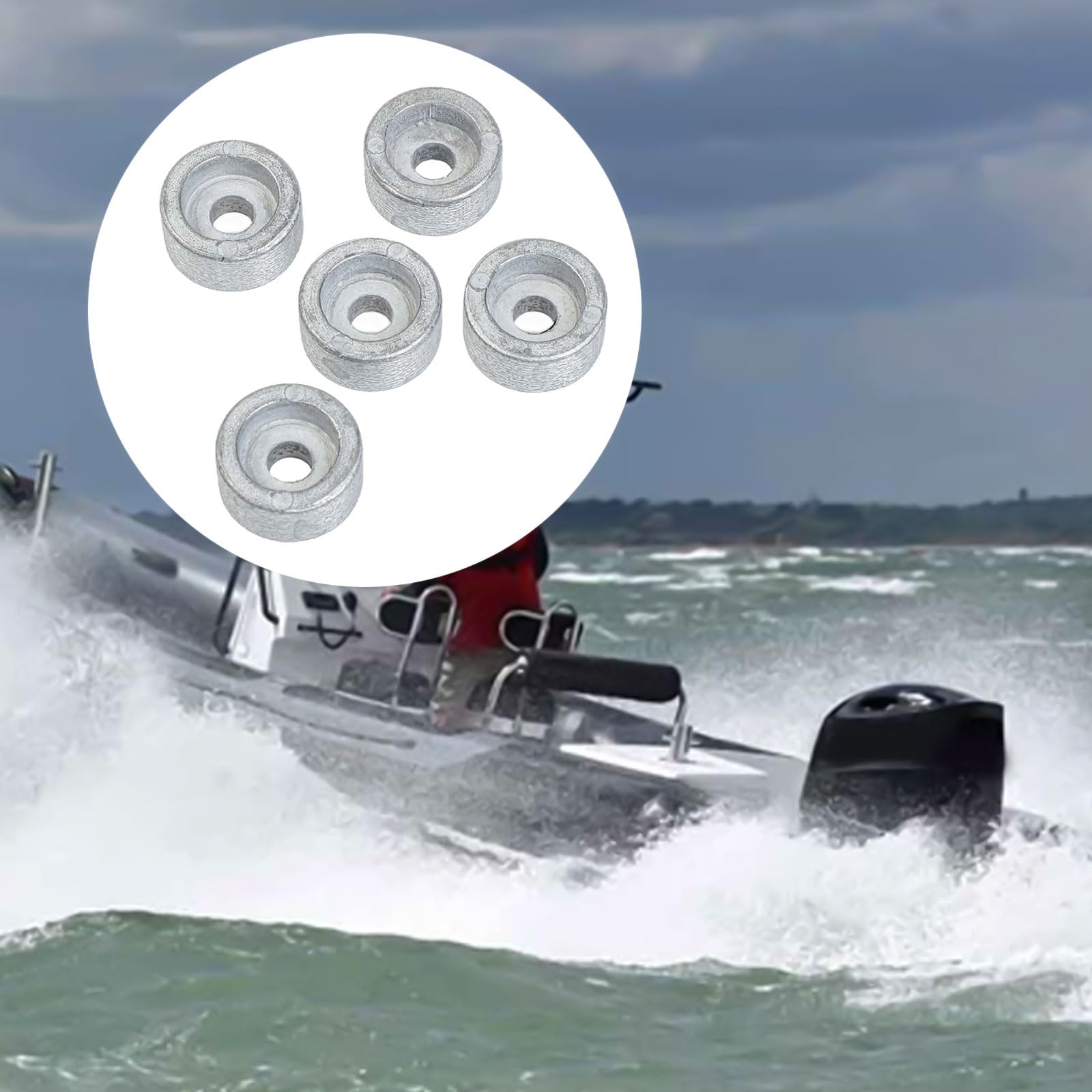 [IVE FUNCTIONALITY] Featuring a set of 5 round zinc anodes, these components are essential for safeguarding your outboard motor against rust and . They actively absorb electrolytic activity while releasing zinc ions to critical metal parts, enhancing the longevity of your engine.