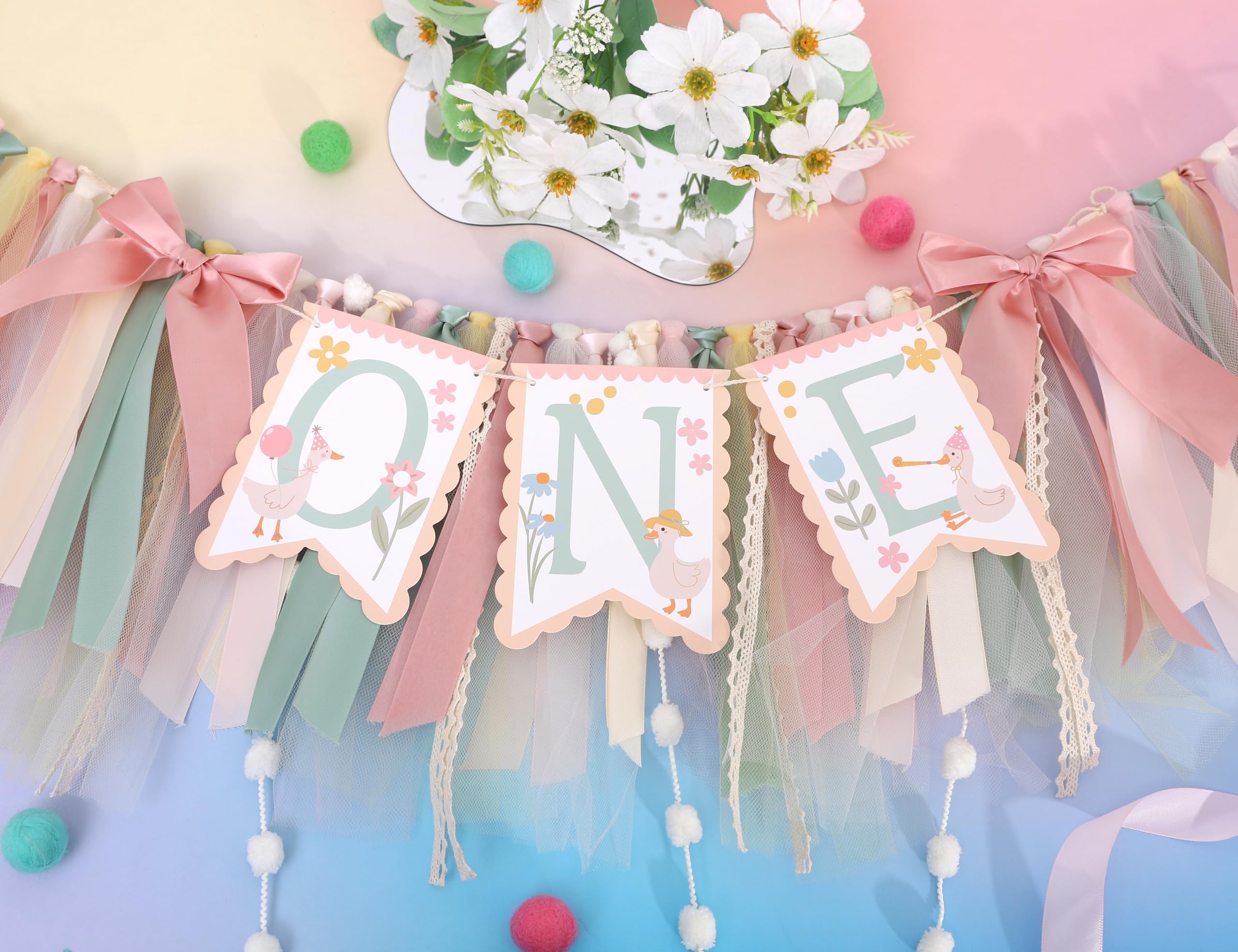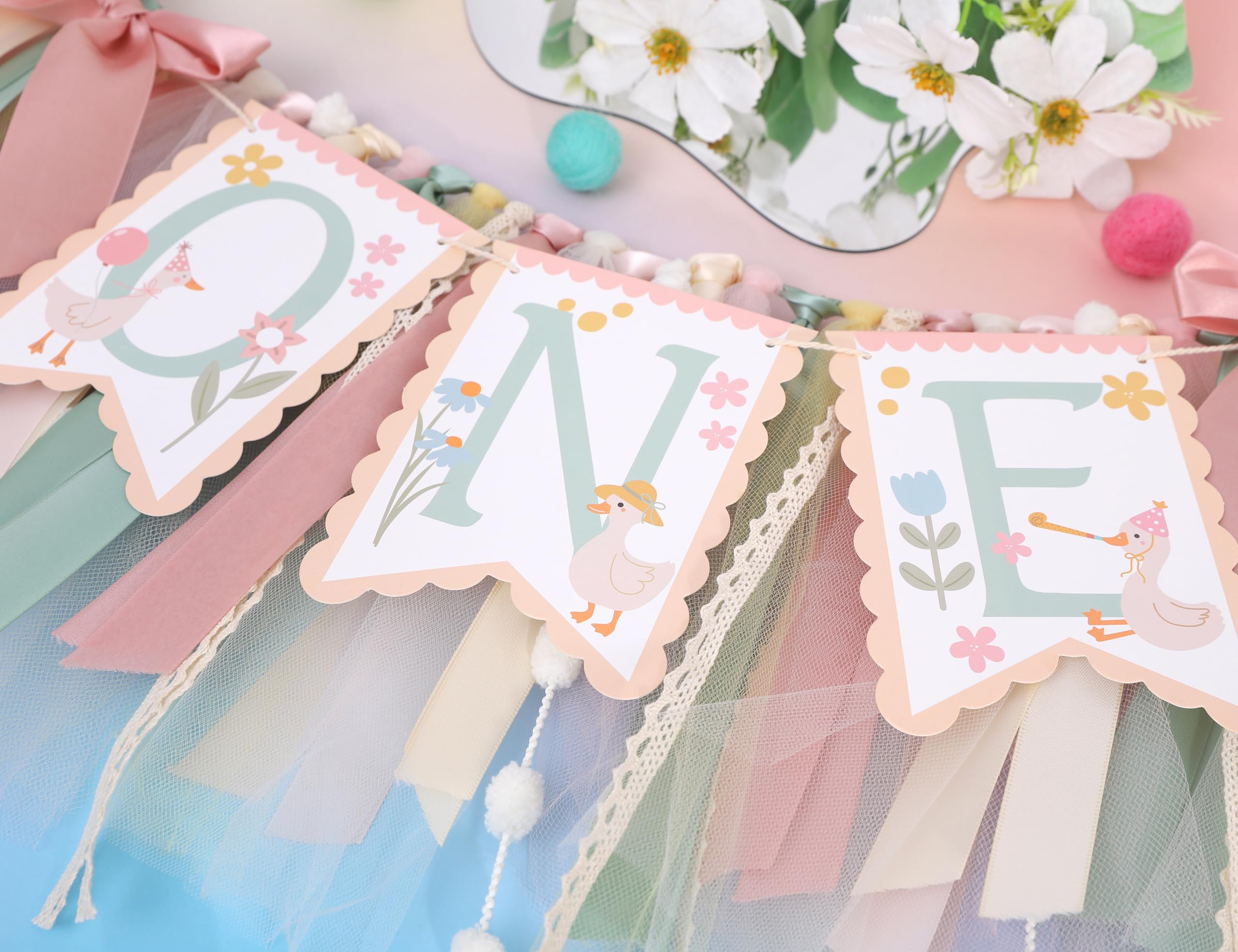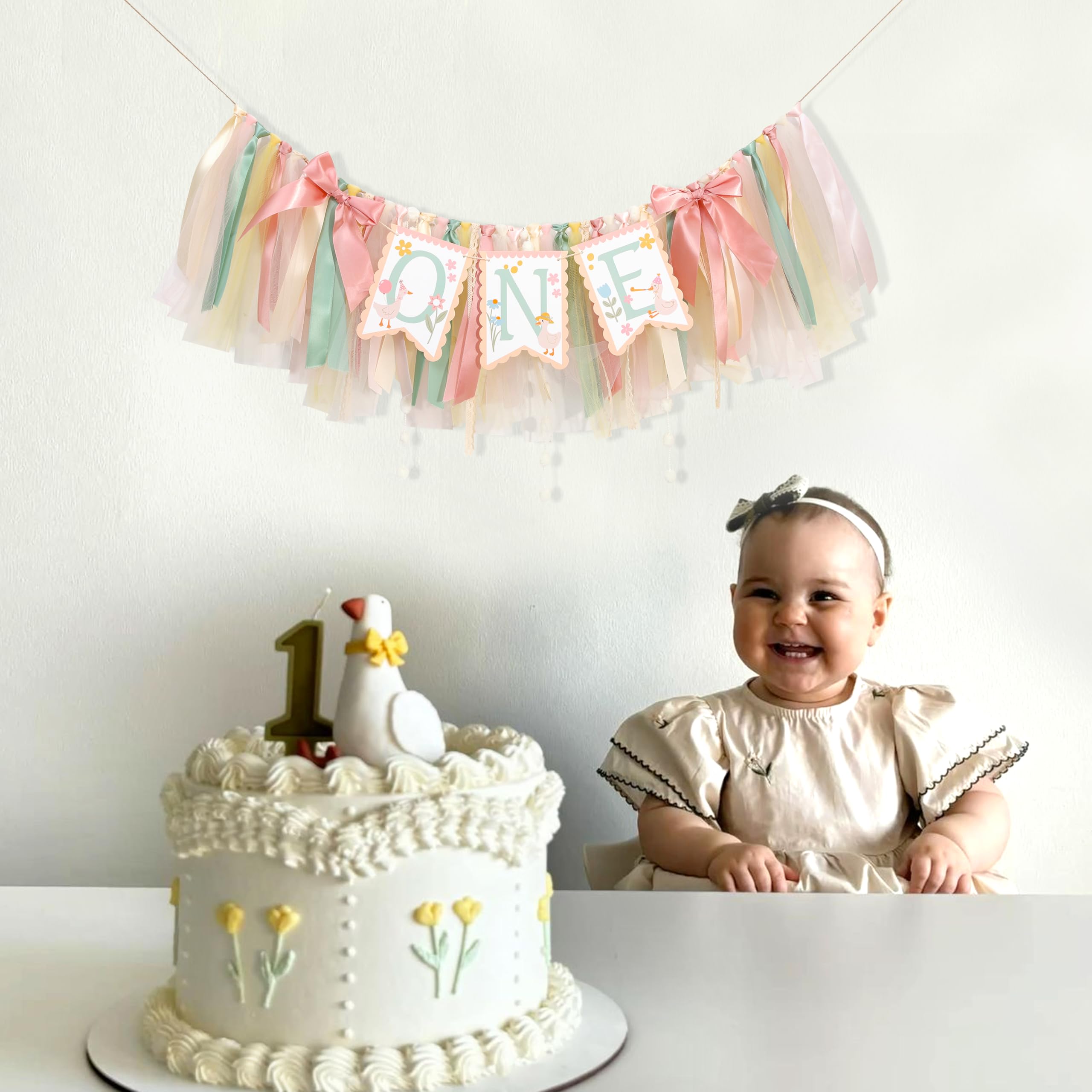 If you want to leave more sweet moments for your little princess's 1st birthday party, then don't miss this adorable goose high chair banner. It will add color to the party and bring more surprises and touches