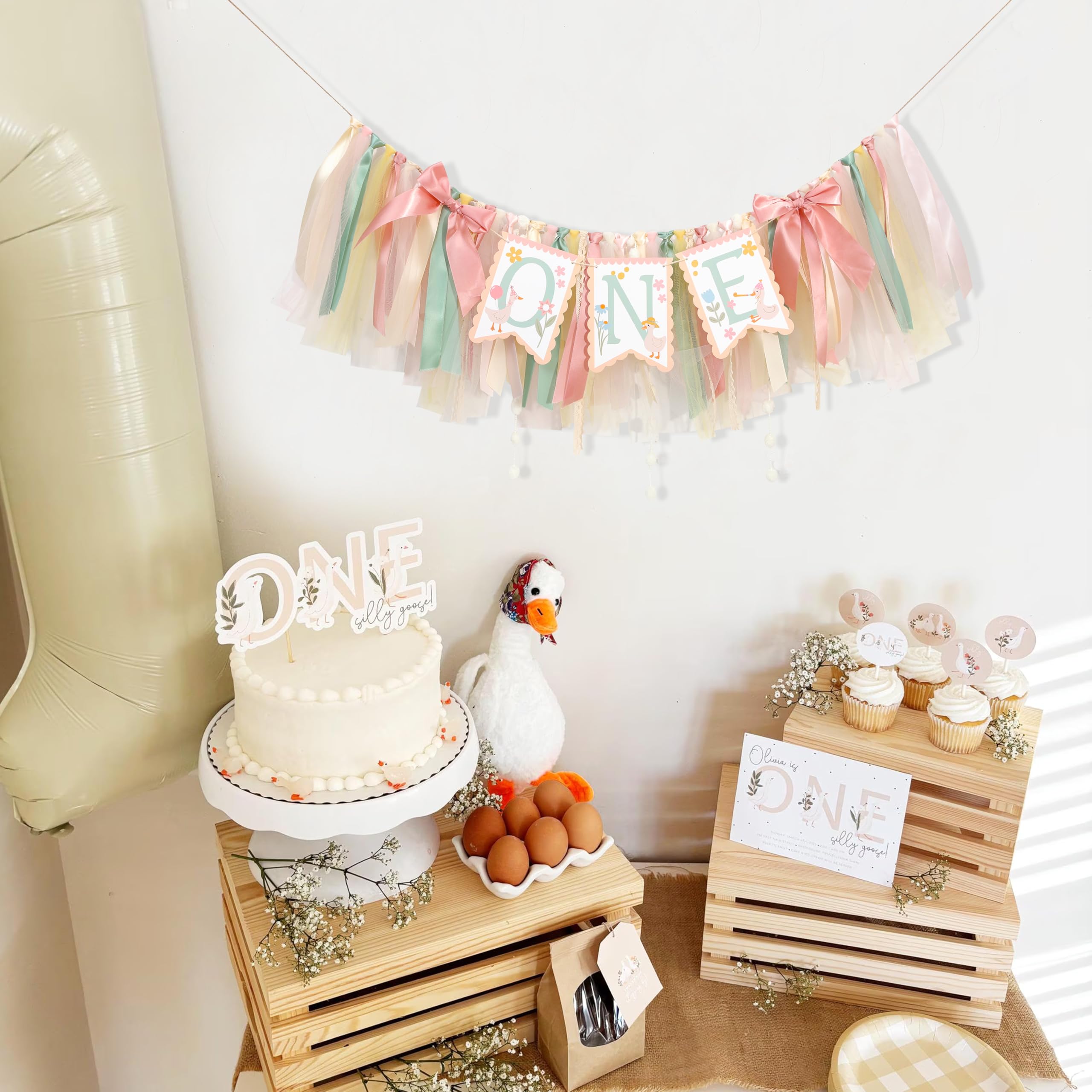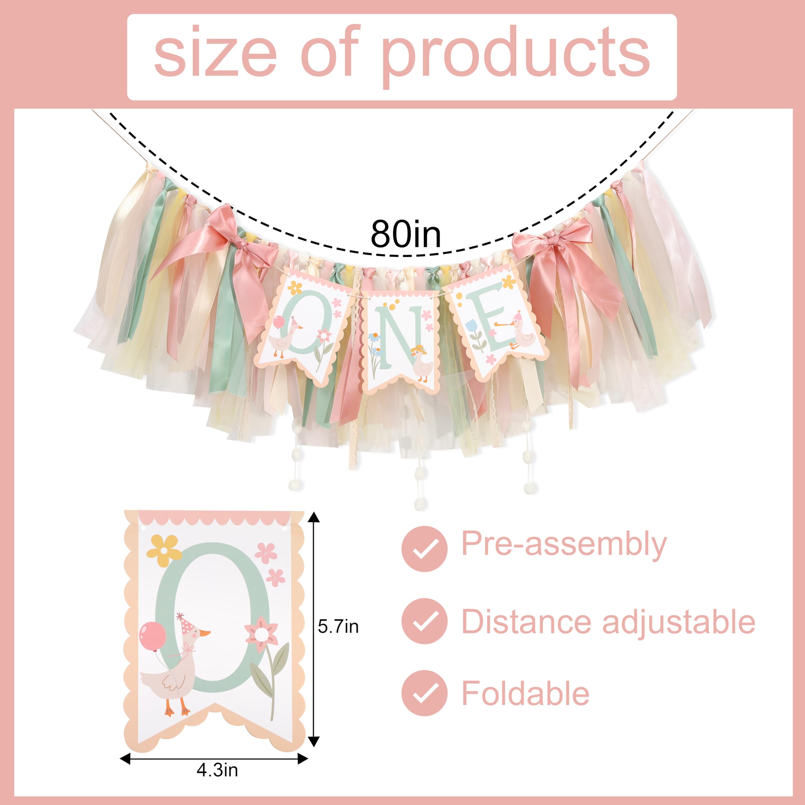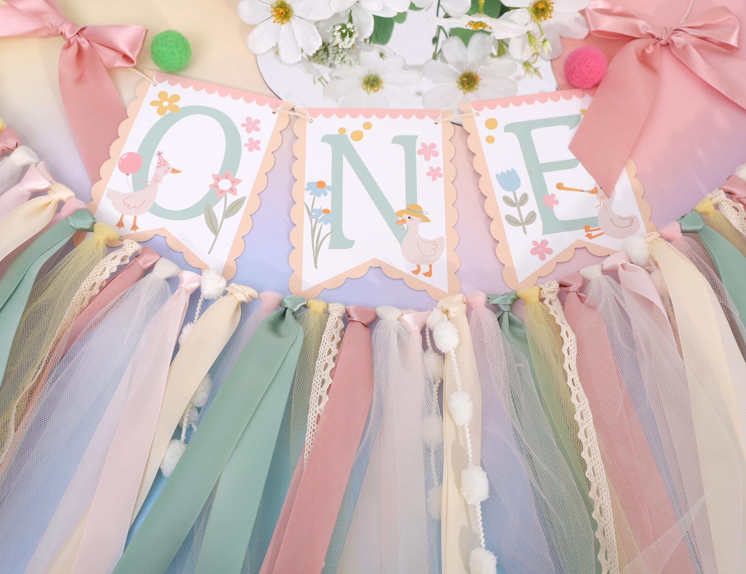 If you want to leave more sweet moments for your little princess's 1st birthday party, then don't miss this adorable goose high chair banner. It will add color to the party and bring more surprises and touches