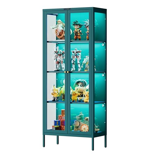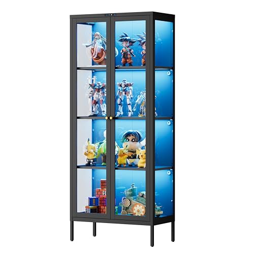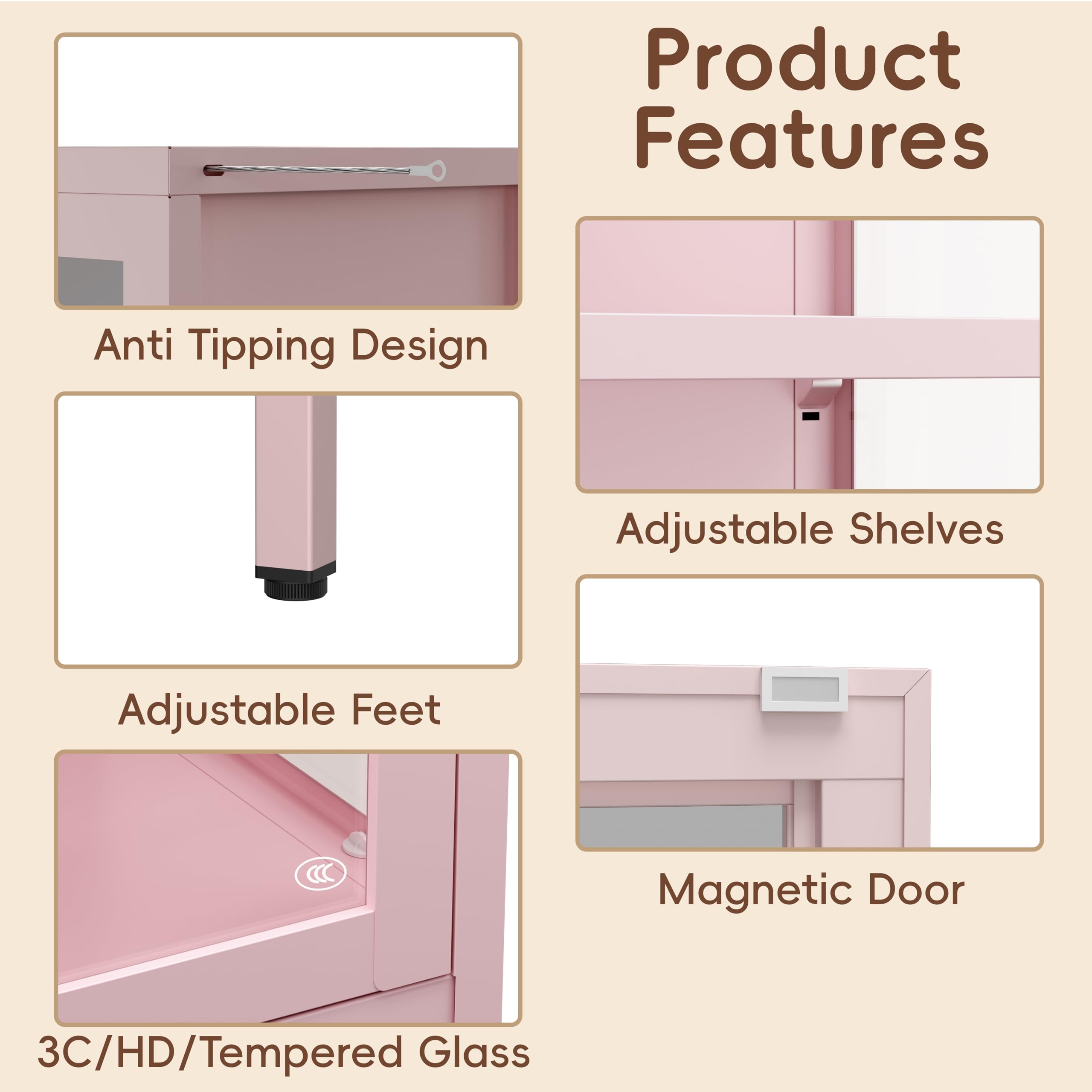 【Sturdy Material】Our display cabinet with glass doors is made of high-strength cold-rolled steel and 3C tempered glass. The eco-friendly powder coating makes this glass display case rust-proof, easy to clean, and odor-free. Sturdy shelves of this display shelf support heavy collectibles while keeping them clearly visible.Size:14"D x 28"W x 66"H