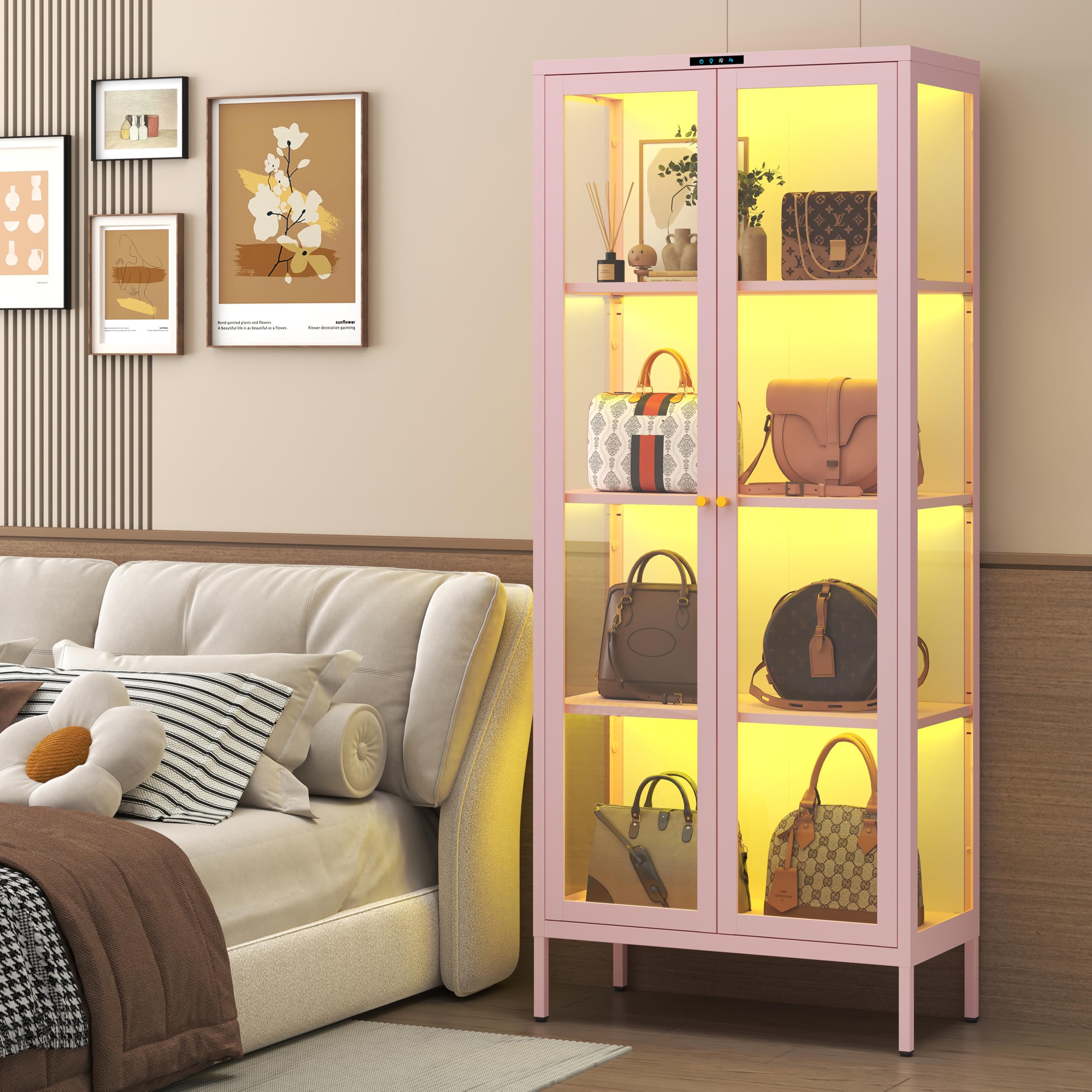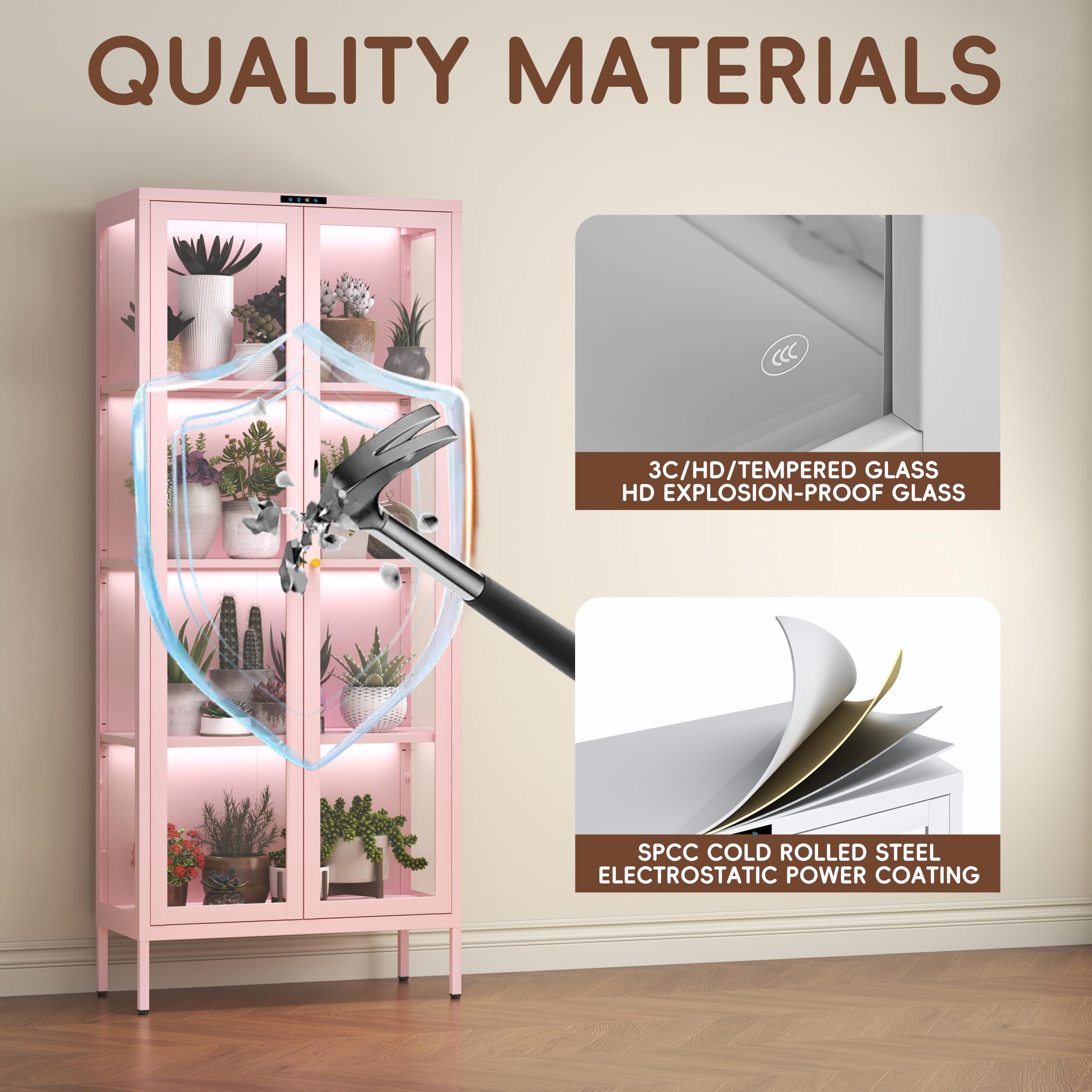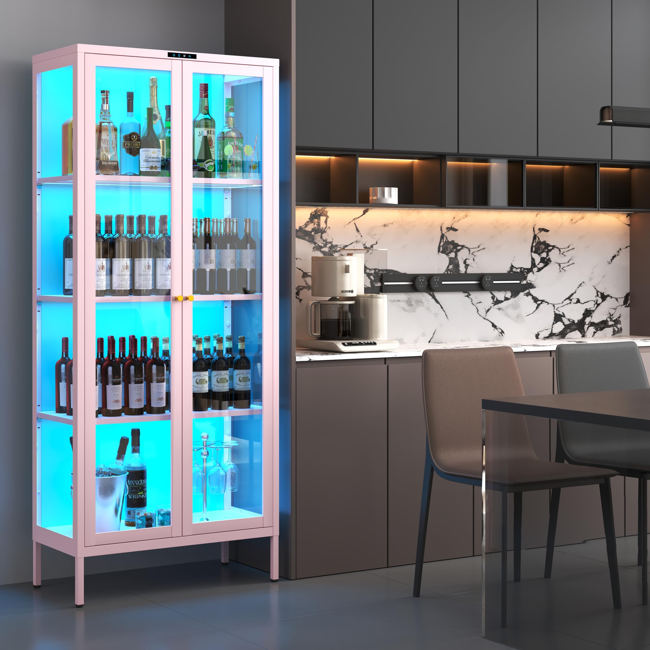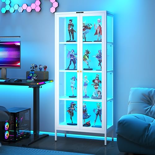 【8-Colors LED Lighting】This cabinet with glass doors is equipped with 8-color LED lights (white, warm, ice blue, deep blue, purple, green, yellow-green, red), supporting both fixed single-color and cycle flash modes. As a led display case, it evenly illuminates your collectibles, serving as a stylish lighted display cabinet that enhances the ambiance of any space