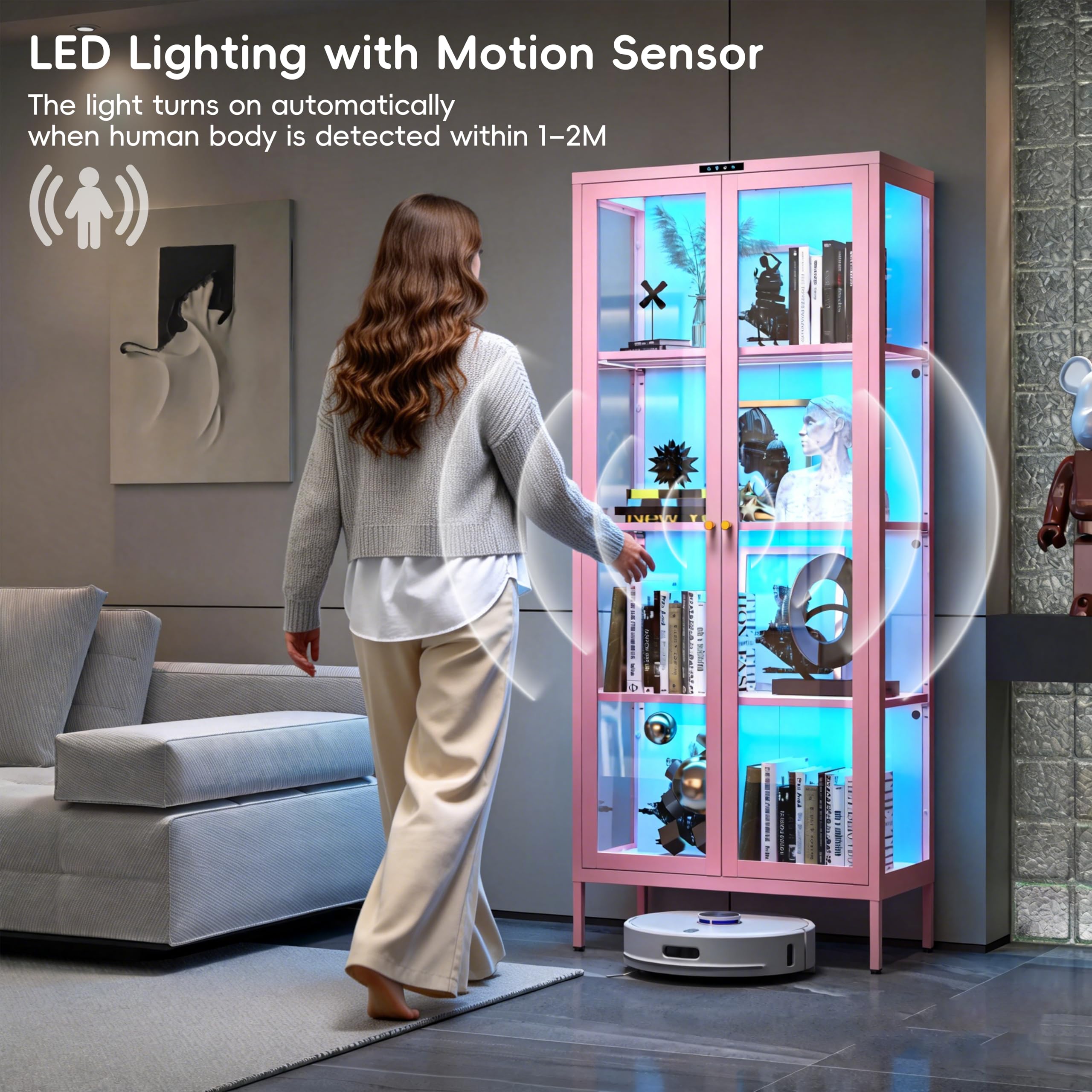 【Smart Motion Sensor】Our display case with lights has a smart sensor that auto-turns on when you’re 1.5–2m away, and off after 30s of inactivity. This hands-free feature makes this lighted display case convenient for viewing your curio display cabinet anytime